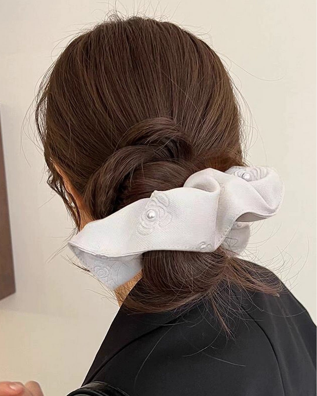 #刺繍シュシュ #パールアクセ #大人ガーリー #ヘアアクセ #ローズデザイン #フェミニンスタイル
