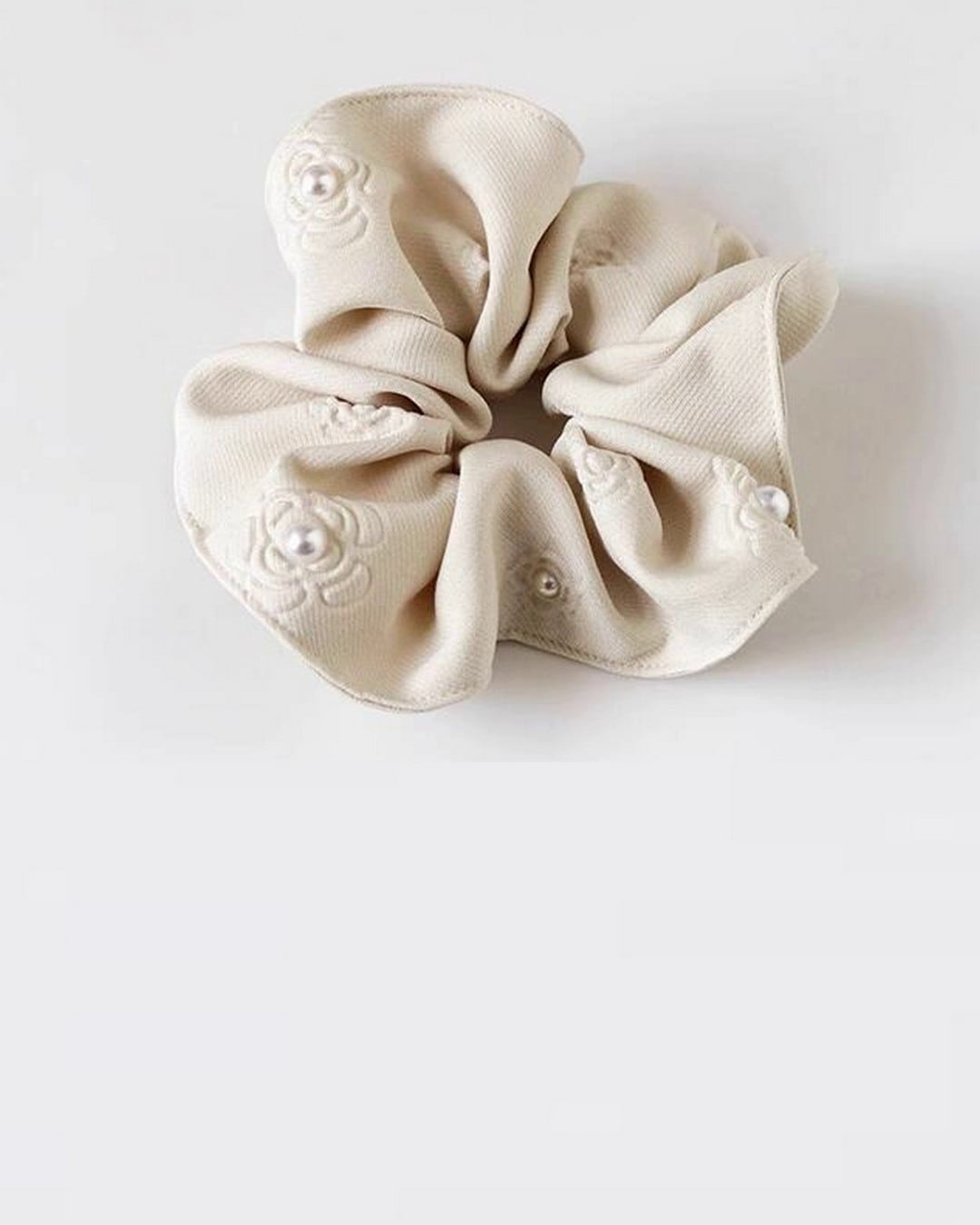 さりげないローズ刺繍と小粒のフェイクパールが上品な印象を与える大人可愛いシュシュ。柔らかい布地で結びやすく、甘すぎず華やかさを添えてくれます。フェミニンなスタイルやきれいめコーデにもぴったりなアイテムです。