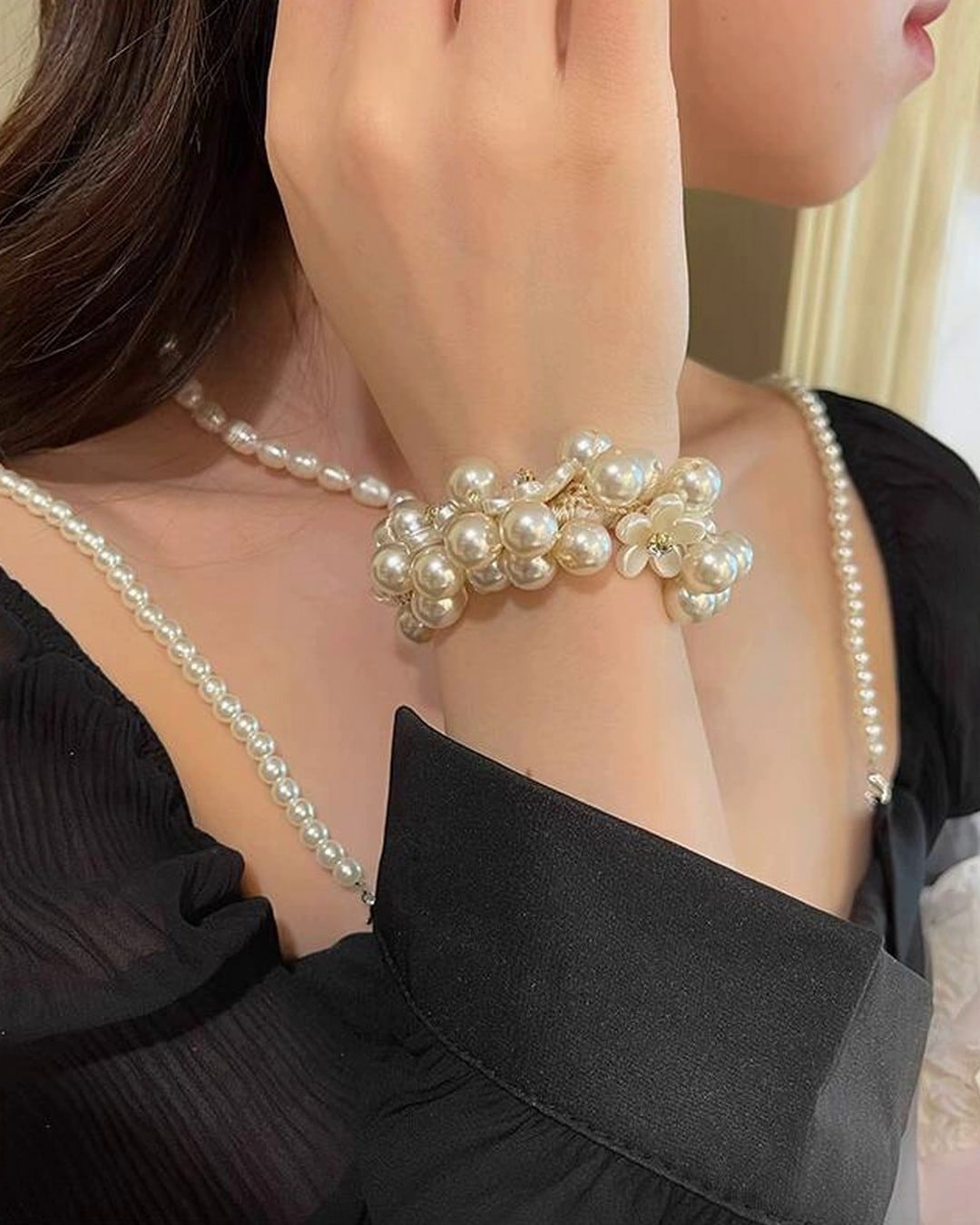#パールシュシュ #ビジューヘア #ヘアアクセ #お呼ばれコーデ #大人ガーリー #華やかヘア