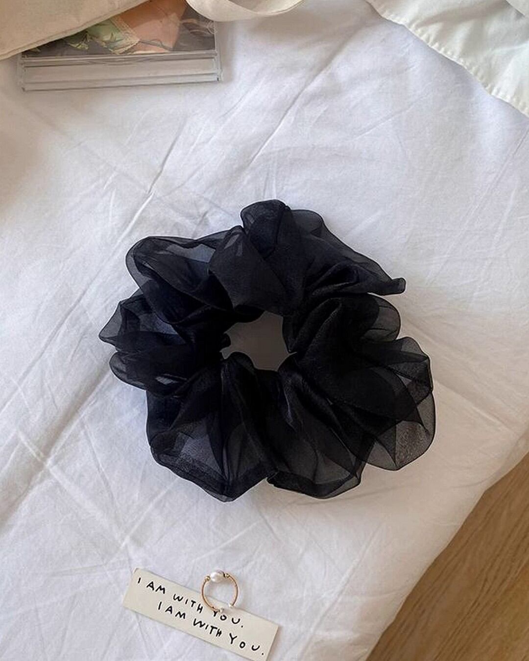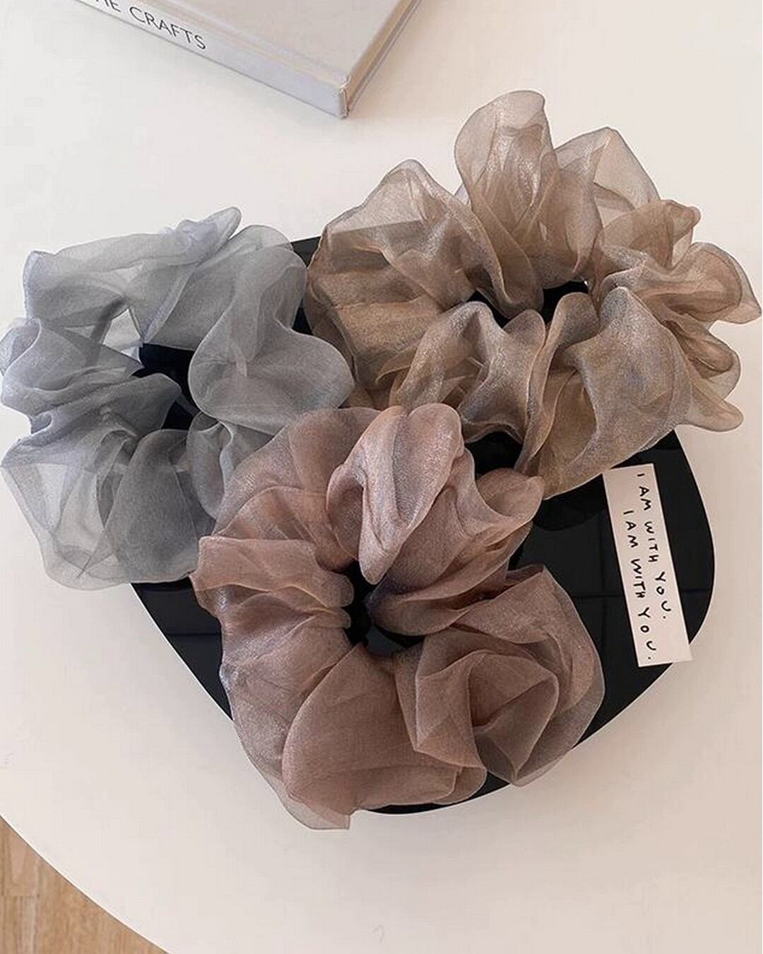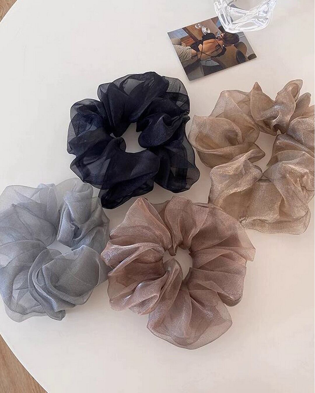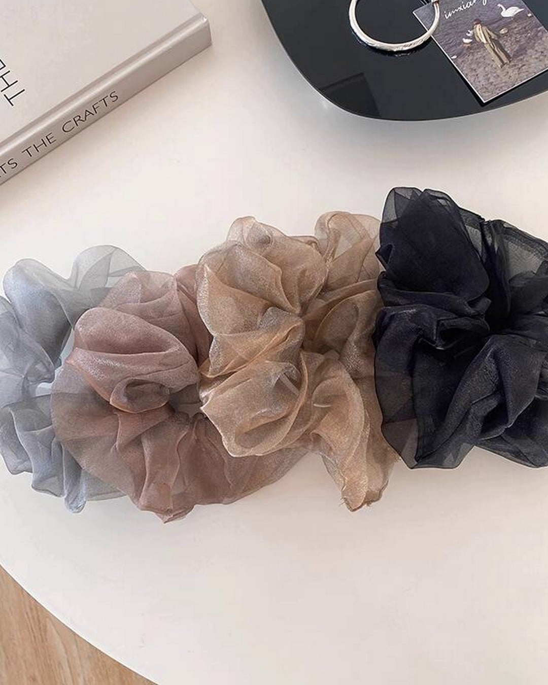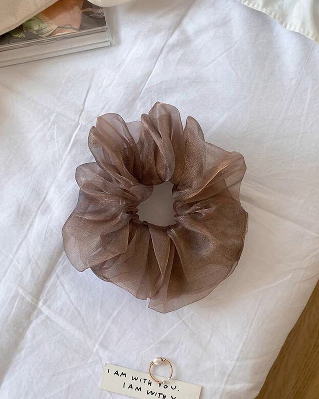 透け感のあるオーガンジー素材がふんわりとした印象を与えるボリュームシュシュ。大きめサイズで存在感があり、まとめ髪のアクセントや手首に着けるアクセ感覚にもぴったり。上品なくすみカラーで大人ガーリーな雰囲気に。