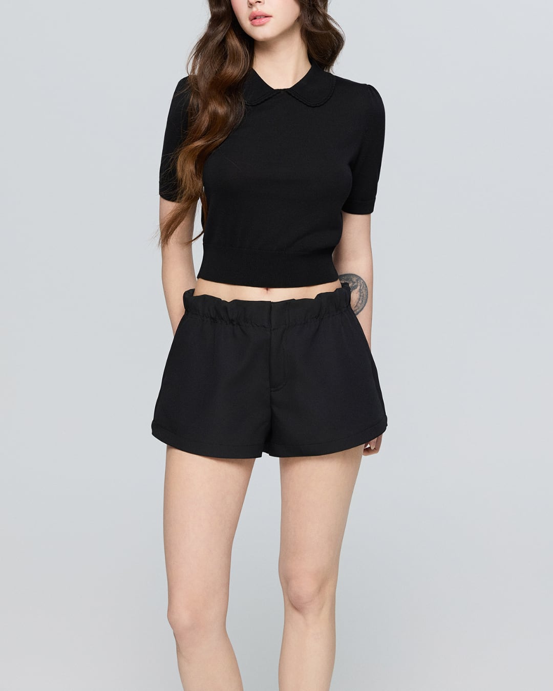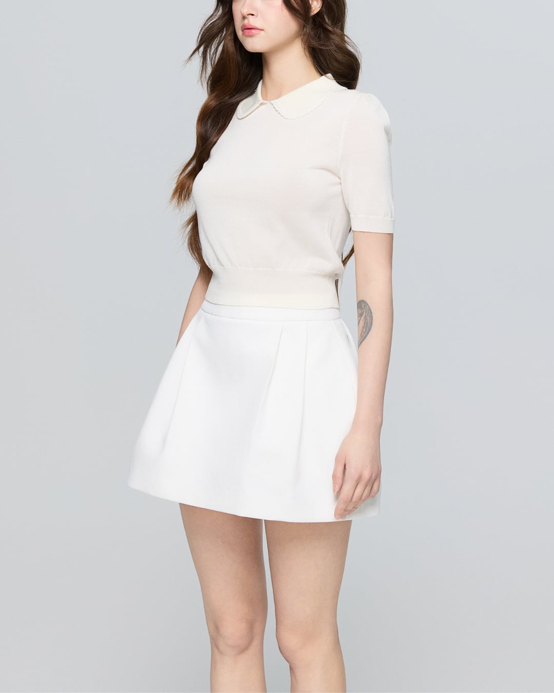 #スカラップ襟 #半袖ニット #ガーリートップス #ミニマルコーデ #大人ガーリー #春夏トップス