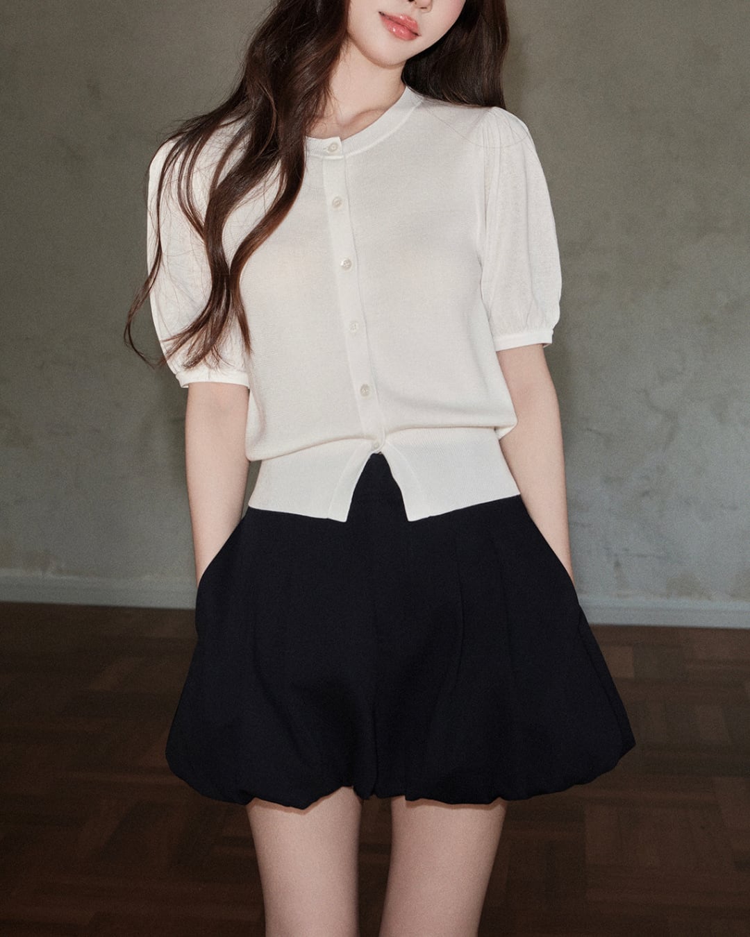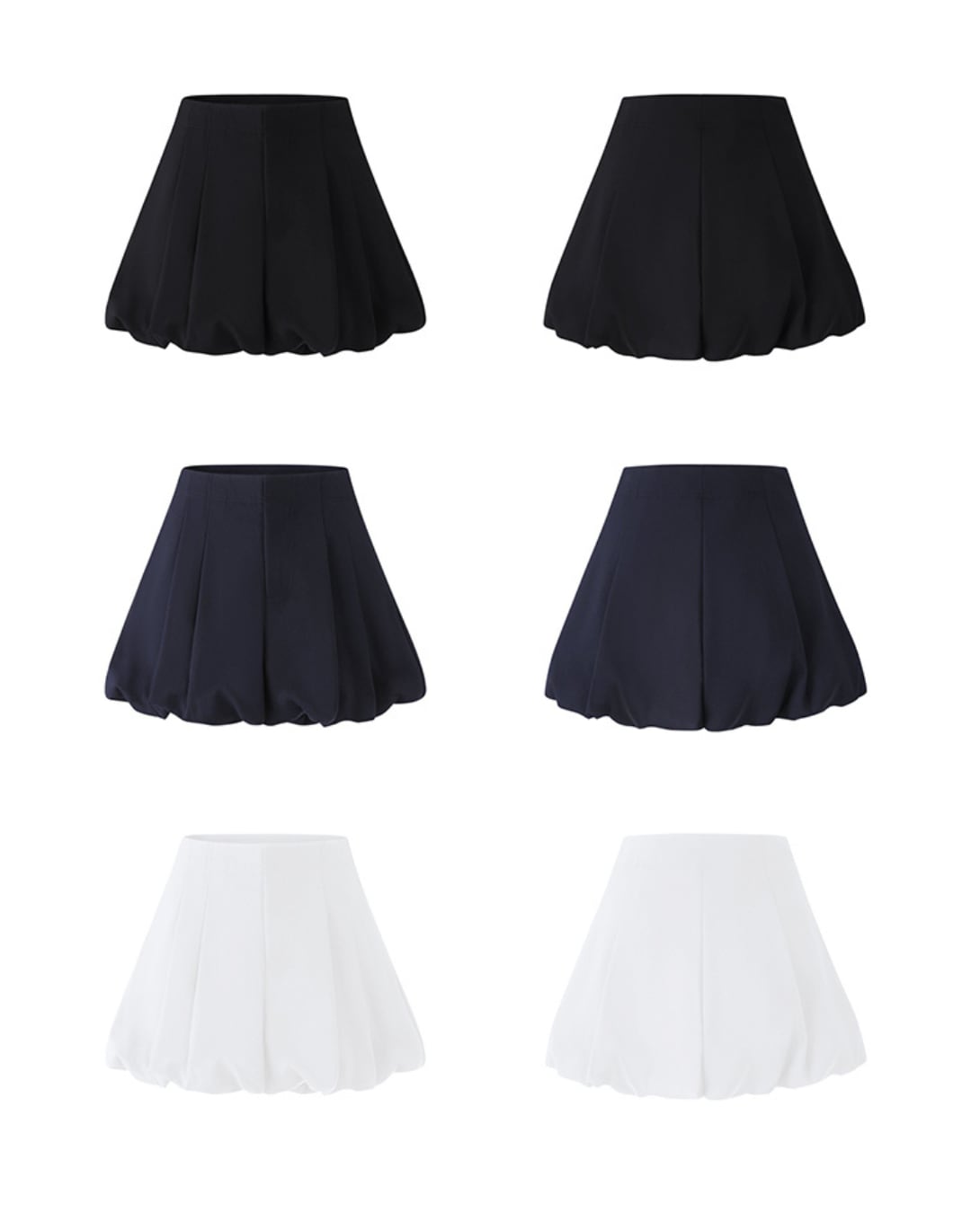 ふんわり丸みのあるバルーンシルエットが魅力のミニスカート。ハリ感のある上品素材で、裾に向かってふくらむ立体的なデザインが脚をすっきり細く見せてくれます。ハイウエストでスタイルアップ効果も抜群。シンプルながら存在感があり、どんなトップスとも相性◎。春夏はTシャツやブラウスと、秋冬はニットと合わせても可愛い着回し力の高い一着です。