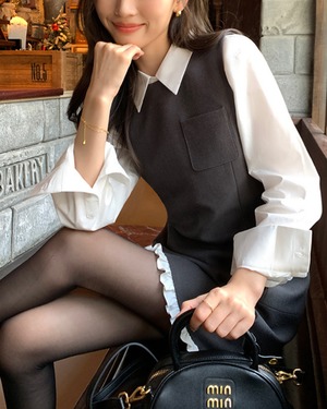 #レイヤード風 #クラシカルコーデ #大人ガーリー #カフェコーデ #フリル裾 #配色デザイン