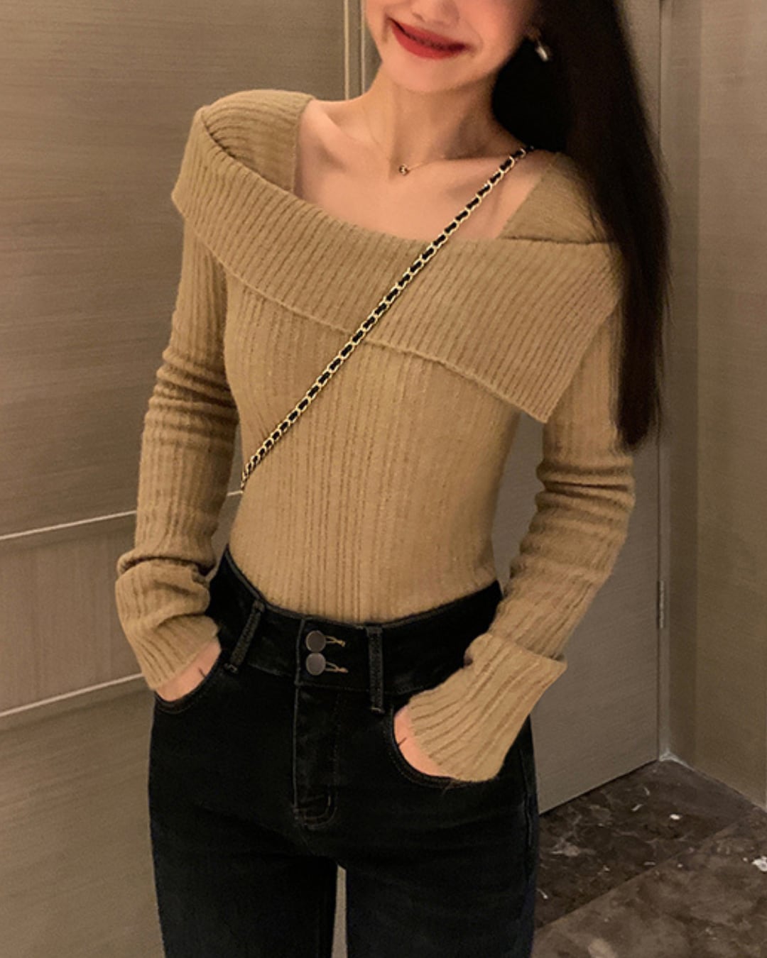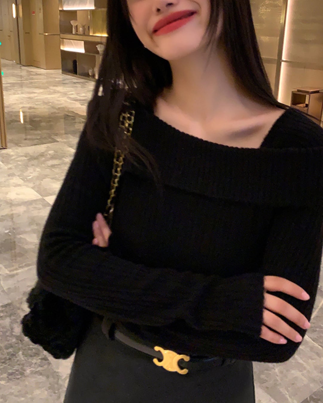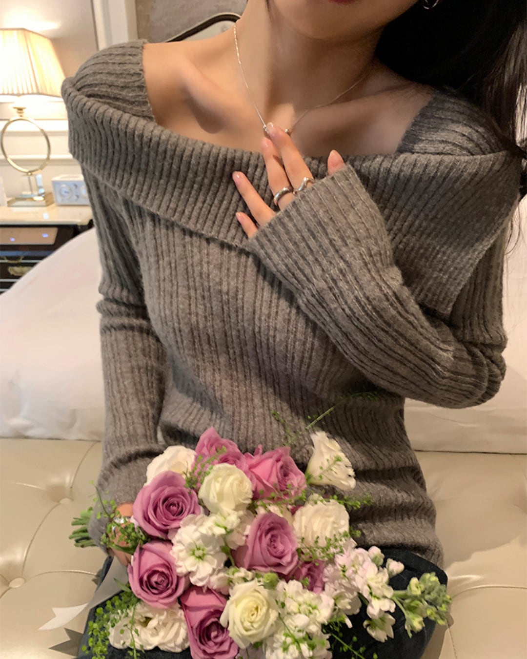#オフショルダー #リブニット #鎖骨見せ #大人ガーリー #タイトシルエット #美シルエット