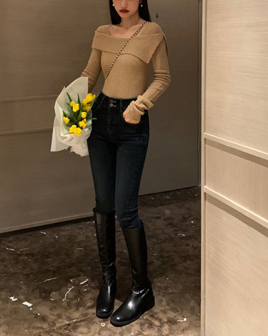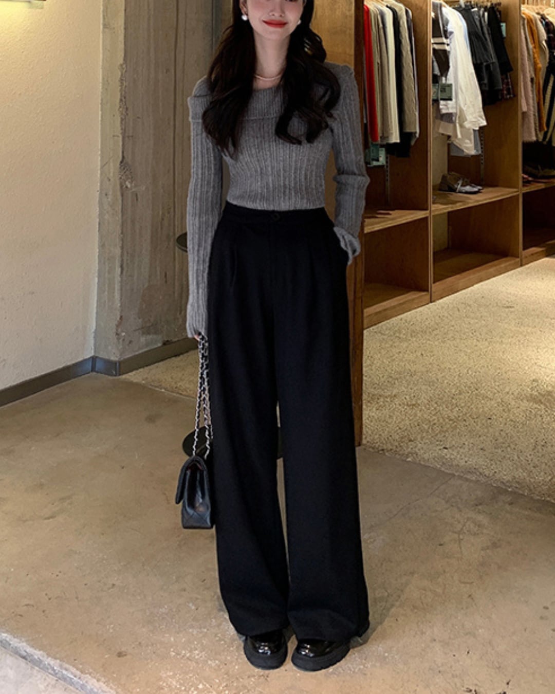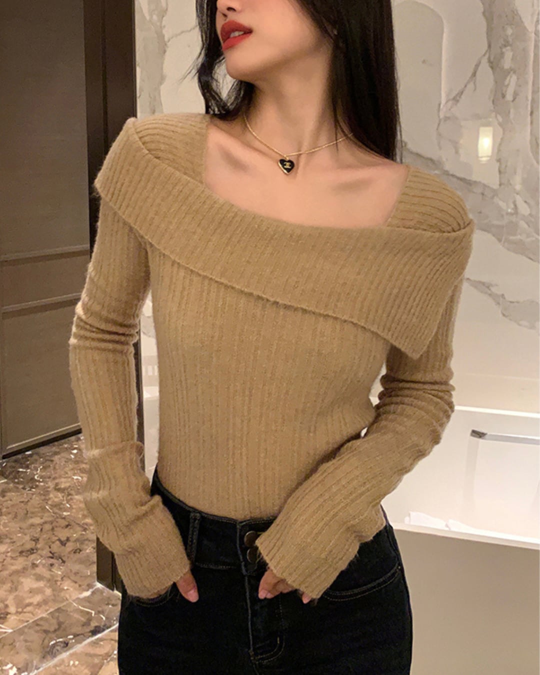 #オフショルダー #リブニット #鎖骨見せ #大人ガーリー #タイトシルエット #美シルエット