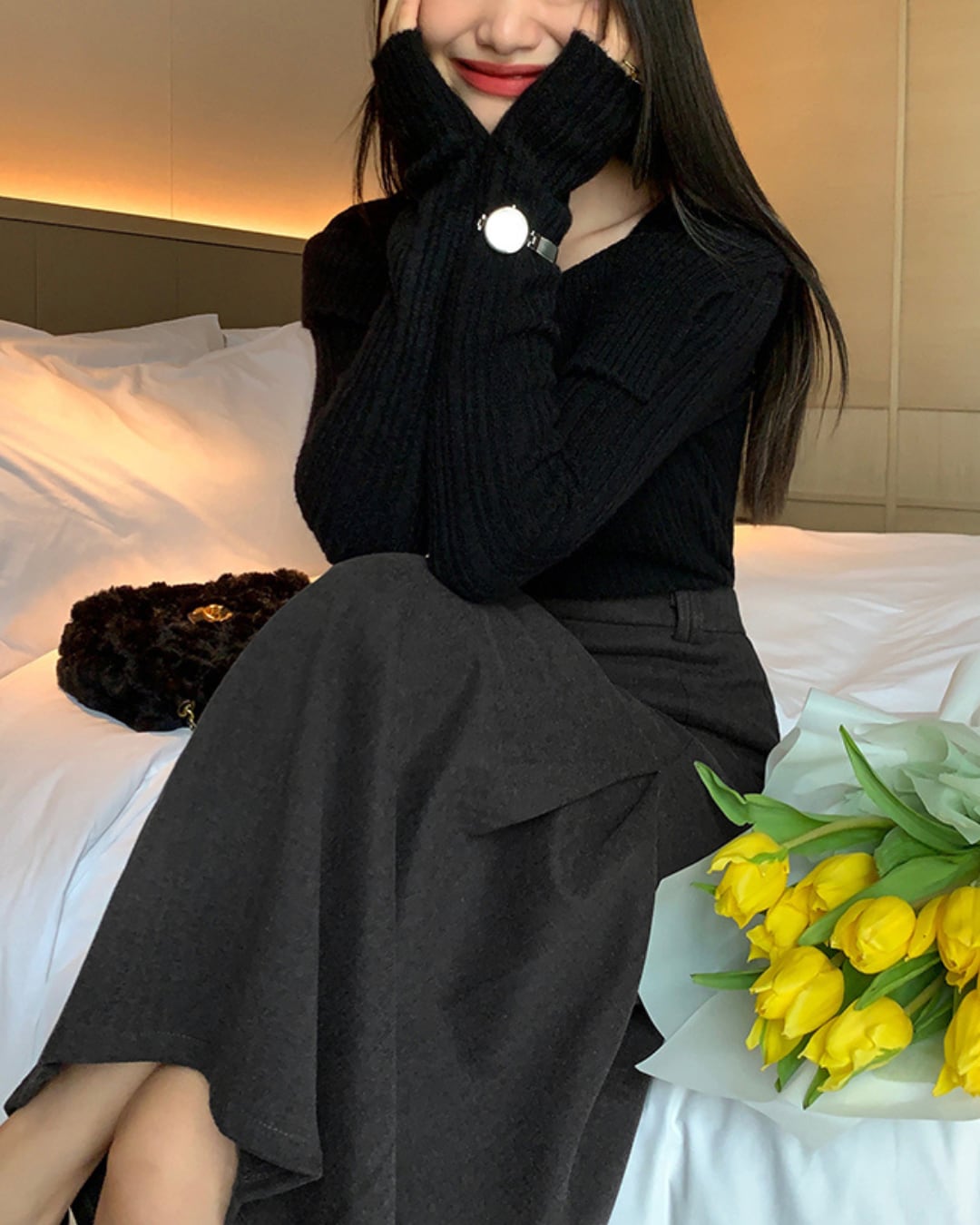 デコルテを美しく見せてくれるオフタートルデザインが魅力のリブニットトップス。柔らかな肌触りと伸縮性のある素材で、体にフィットしながらも締め付け感のない着心地です。1枚で大人ガーリーな雰囲気を演出できるアイテム。デニムにもスカートにも合わせやすく、デイリー使いにもおすすめ。