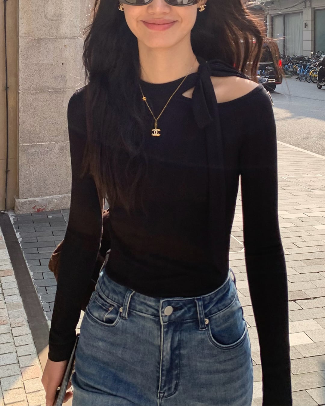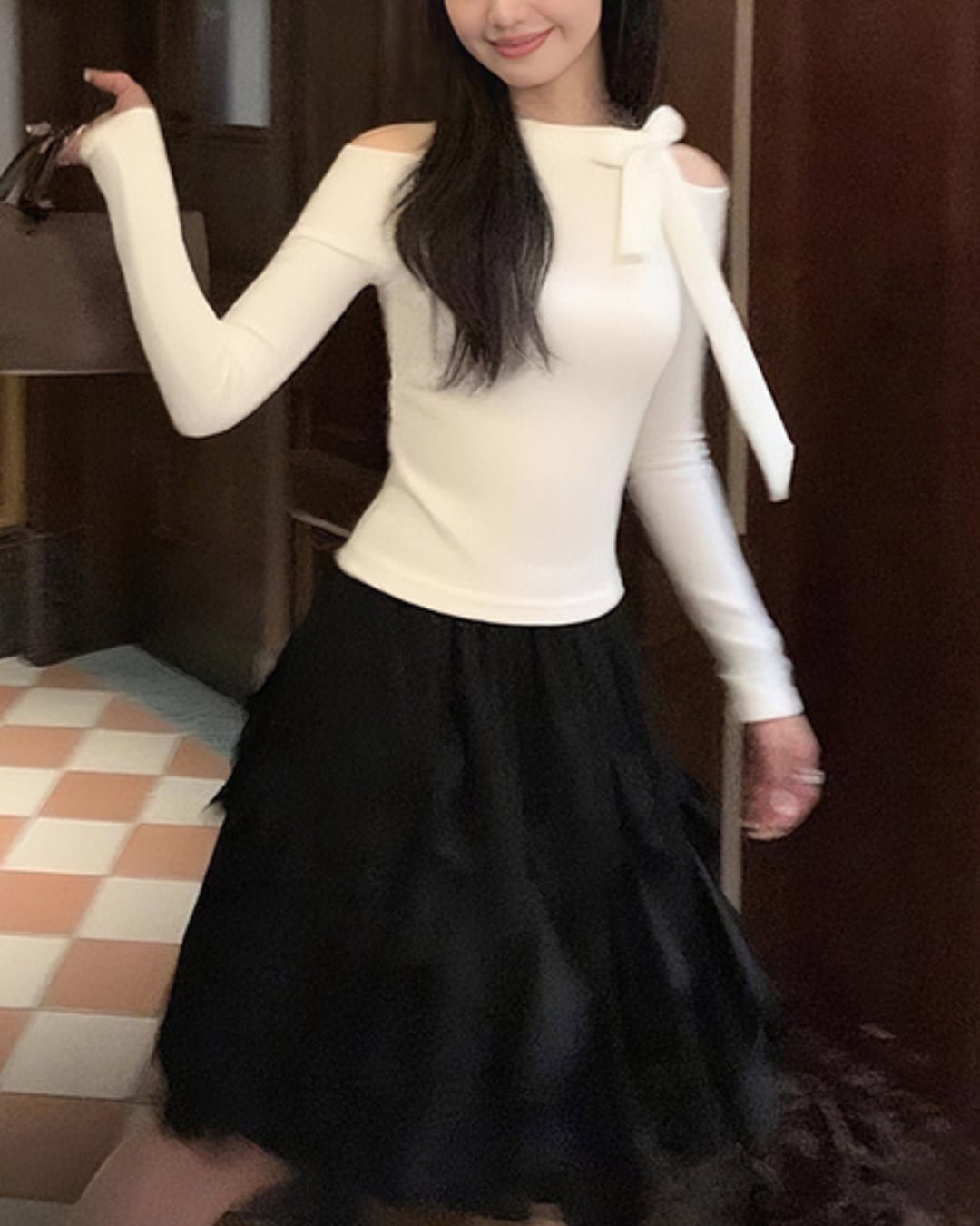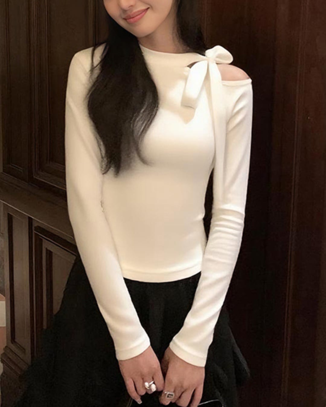 #リボントップス #ワンショルダー #美シルエット #フェミニンコーデ #肌見せトップス #大人ガーリー