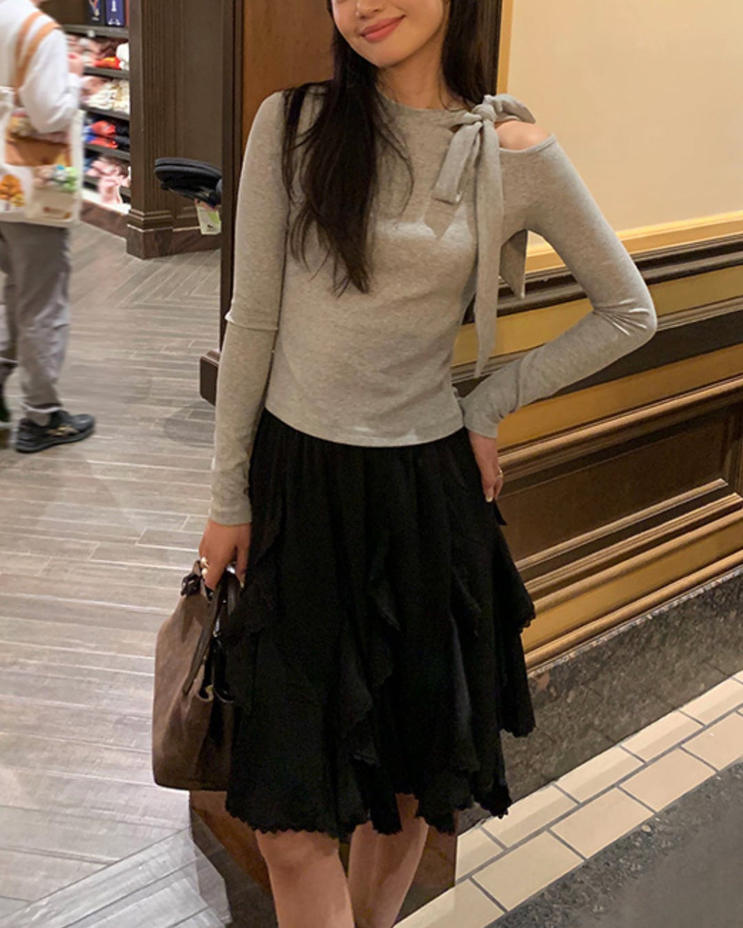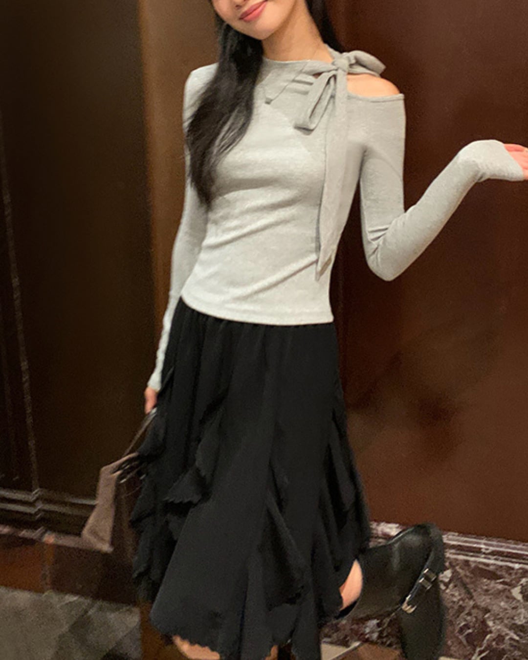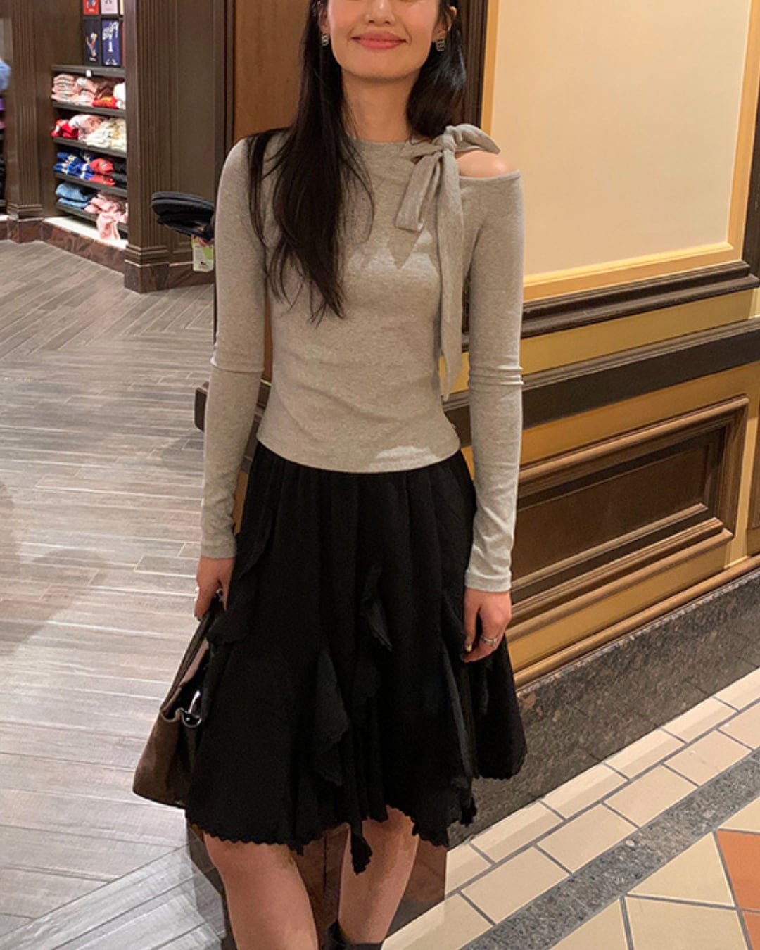 #リボントップス #ワンショルダー #美シルエット #フェミニンコーデ #肌見せトップス #大人ガーリー