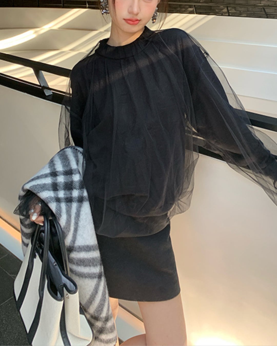 クラシカルな雰囲気とトレンド感を兼ね備えたシアースリーブトップス。軽やかな雪紡素材の外層と、伸縮性のある内層が絶妙にレイヤードされ、1枚でこなれ感のあるスタイルに仕上がります。丸首とドロップショルダーのリラックスシルエットで、体型カバーも◎。袖はふんわりとしたシアー感があり、フェミニンさと大人の抜け感を演出。スカートにもパンツにも合わせやすく、デイリーにも特別な日にも活躍してくれる万能アイテムです。
