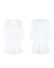 淡く上品なフラワー刺繍が全体に施された、ナチュラルな白ワンピース。コットン100%のさらりとした素材感で、軽やかな着心地を実現。ウエストと胸元のリボンディテールが女性らしいラインを引き立てつつ、ふんわりとしたシルエットで体型カバーも◎。袖口のギャザーが程よい甘さをプラスし、シンプルながらもディテールにこだわった一枚です。パールアクセやカゴバッグと合わせて、デイリーにもバカンスにもぴったりのコーデに仕上がります。