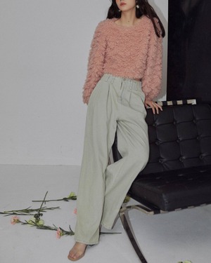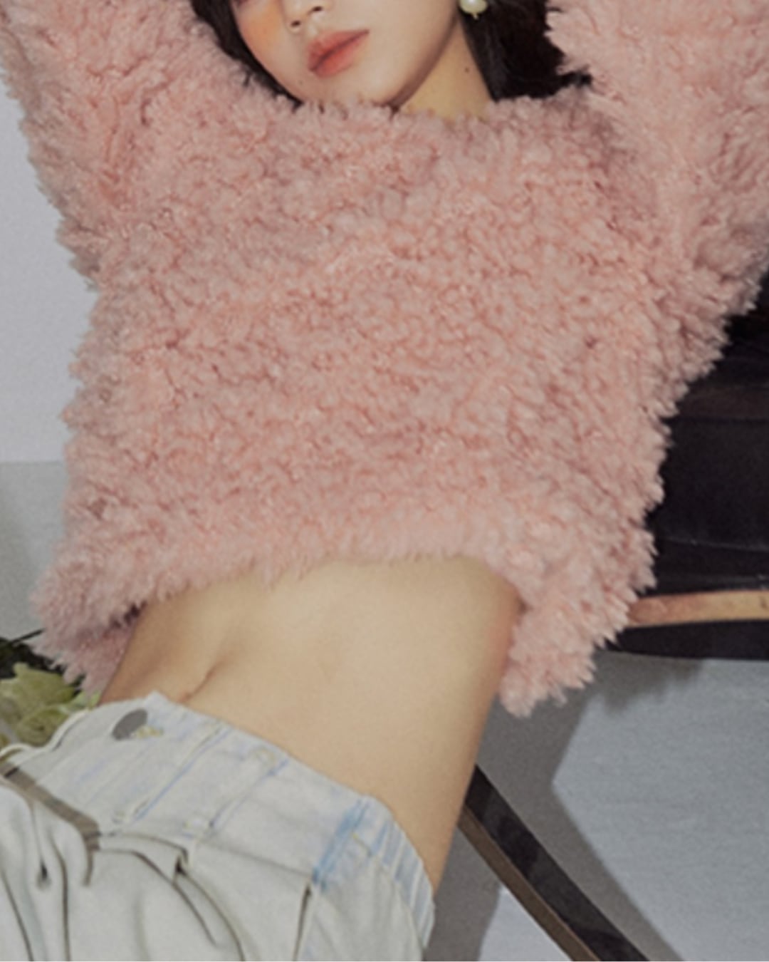 ボリューム感のあるフェイクボア素材が可愛い、もこもこショートブルゾン。温かみのあるくすみピンクカラーが、甘すぎず大人可愛い印象に。軽くてふわっと柔らかい手触りで、肌寒い季節にぴったり。袖はゆったりとしたランタンスリーブで、トレンド感のあるシルエットに仕上げました。短め丈なのでハイウエストボトムとの相性も◎。シンプルなインナーに羽織るだけで、コーデの主役になれる一枚です♡
