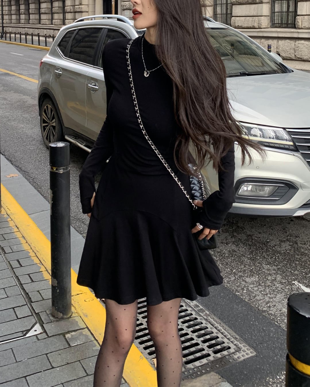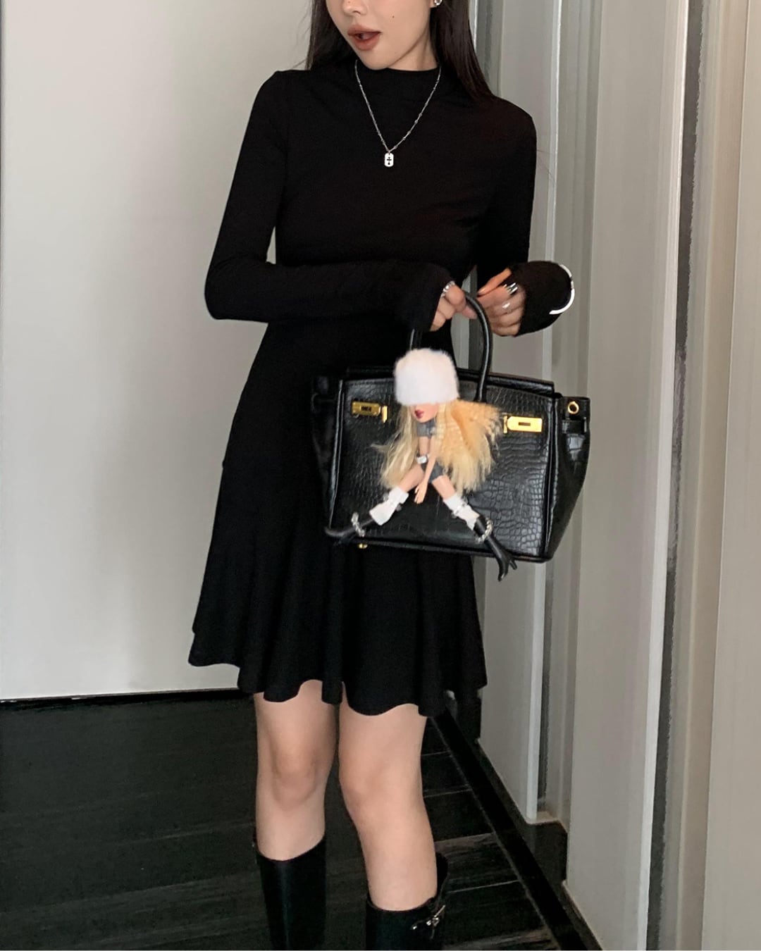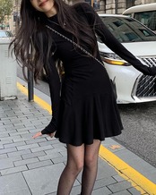 #ブラックワンピース #フィットアンドフレア #モックネック #スタイルアップ #大人ガーリー #シンプル映えワンピ