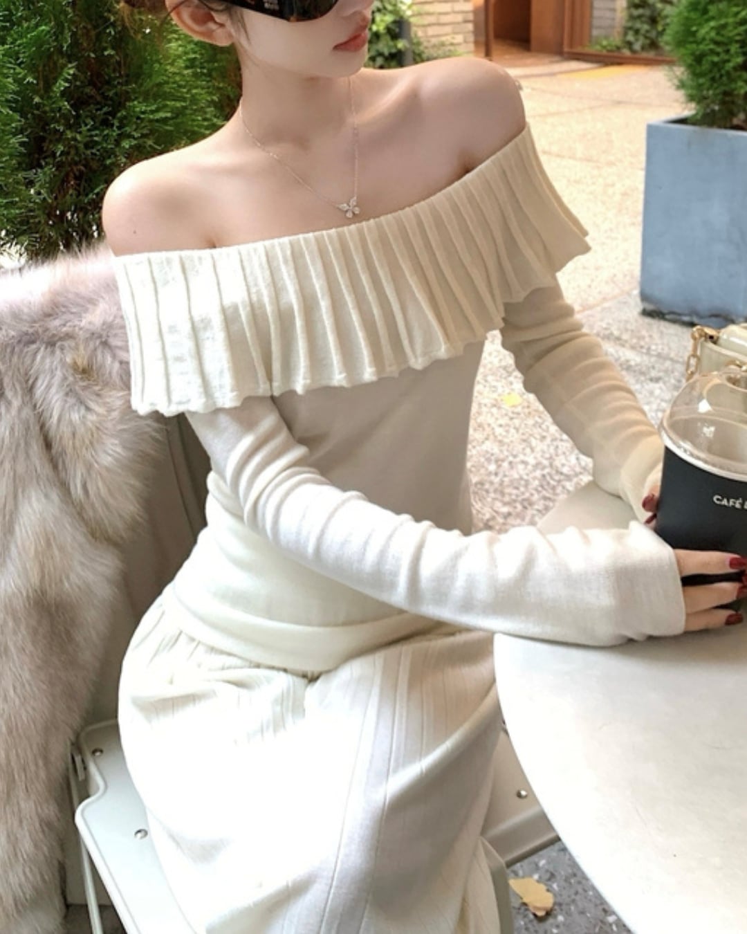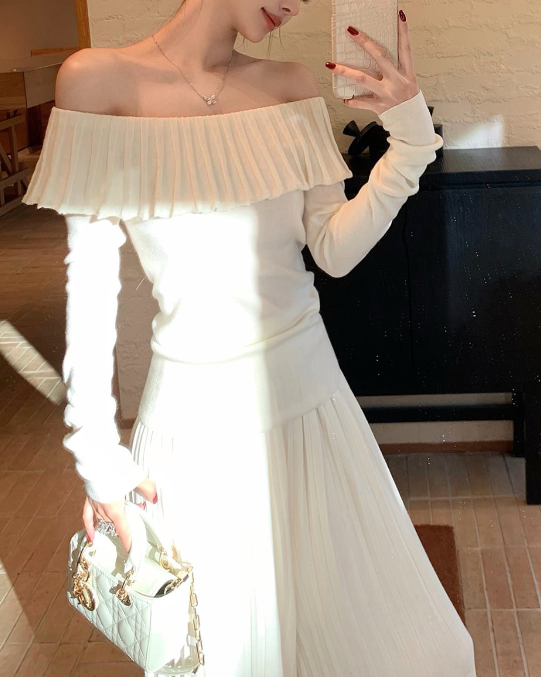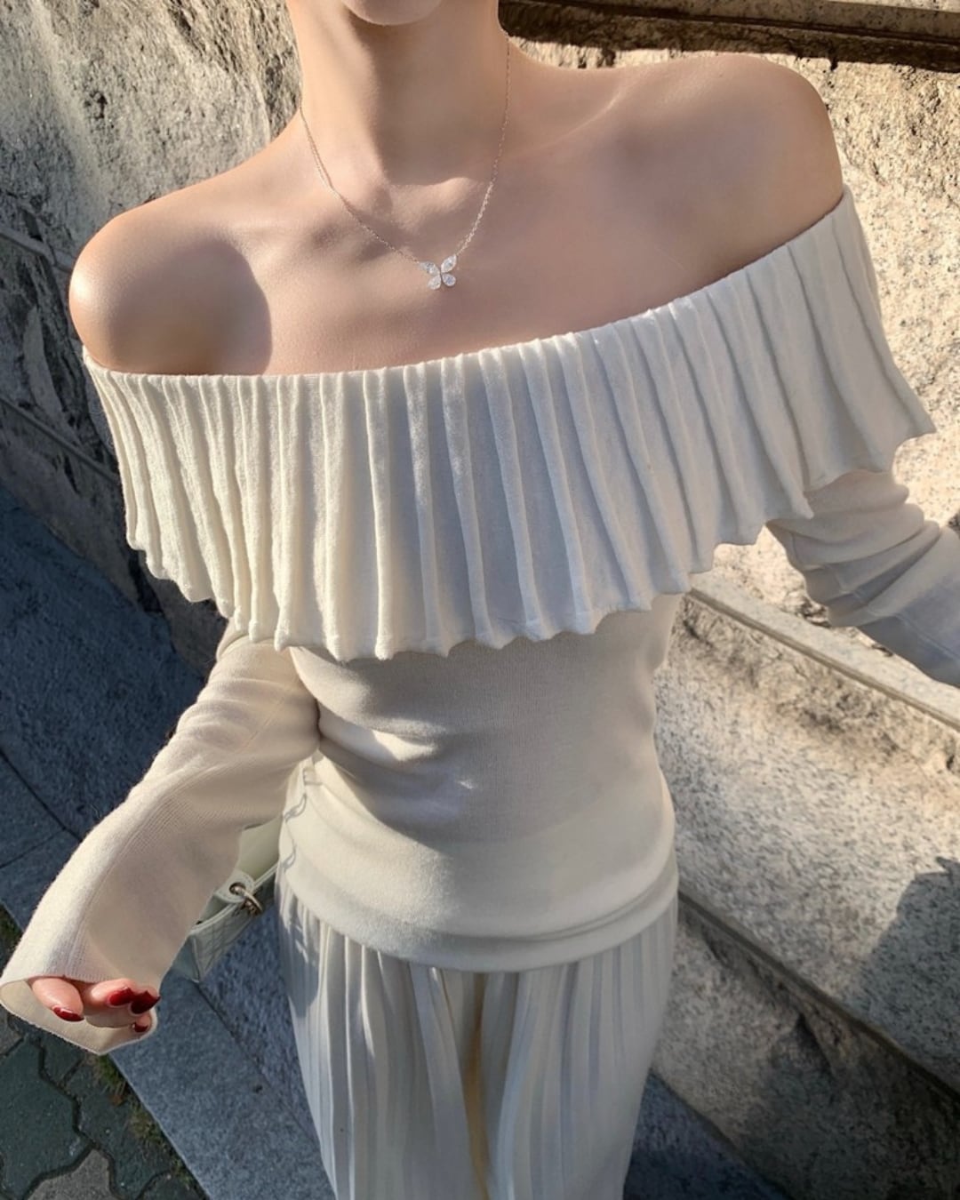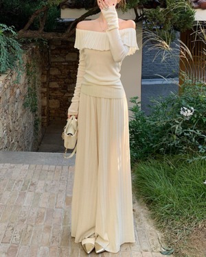 フリルオフショルニット×プリーツパンツセットアップ l5040