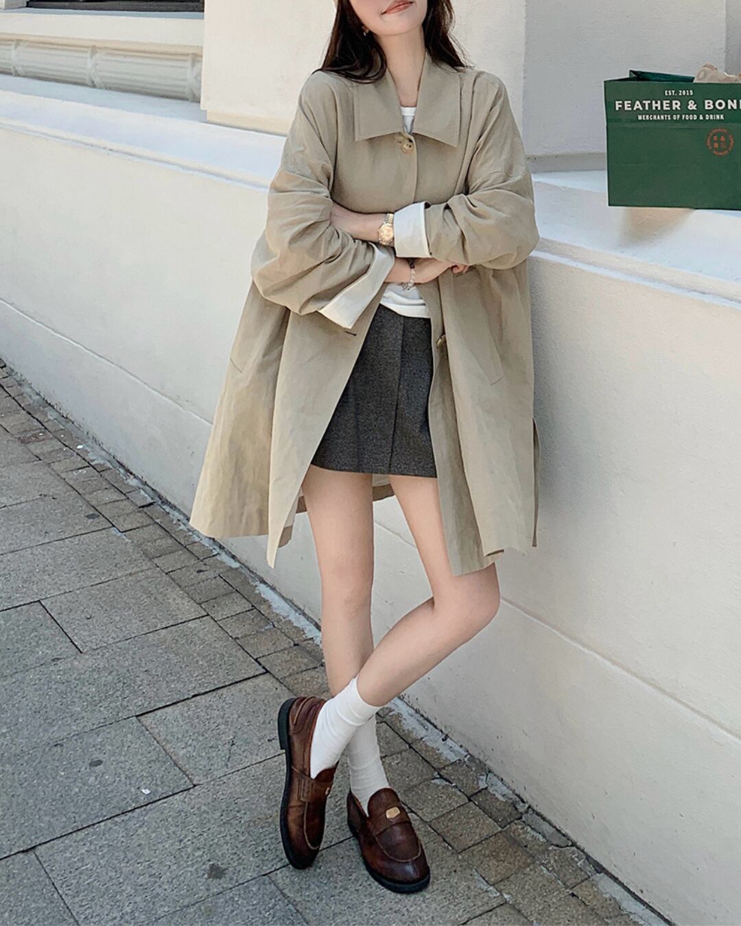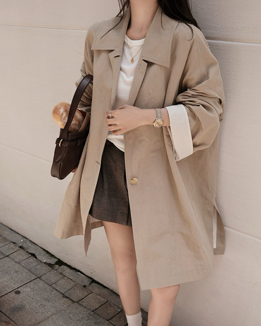 #ステンカラーコート #リネン混 #オーバーサイズ #ライトアウター #大人カジュアル #春アウター #羽織りコーデ