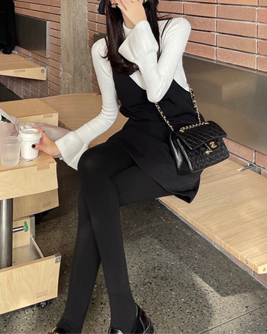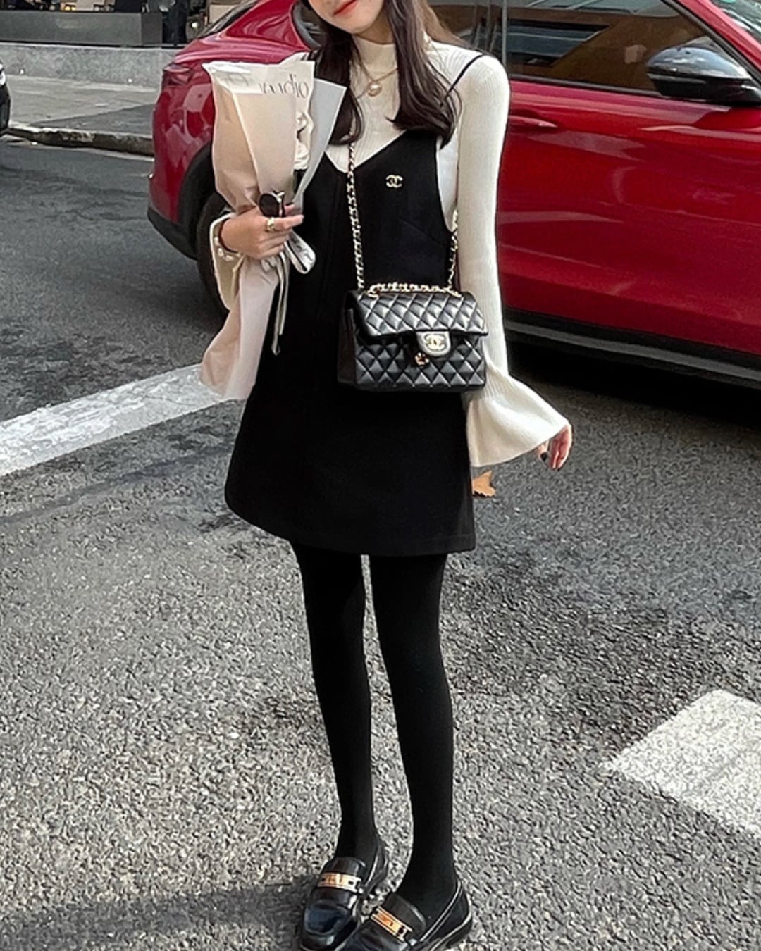 #フレアスリーブ #リブニット #ホワイトトップス #ジャンスカに合う #レイヤードコーデ #大人ガーリー