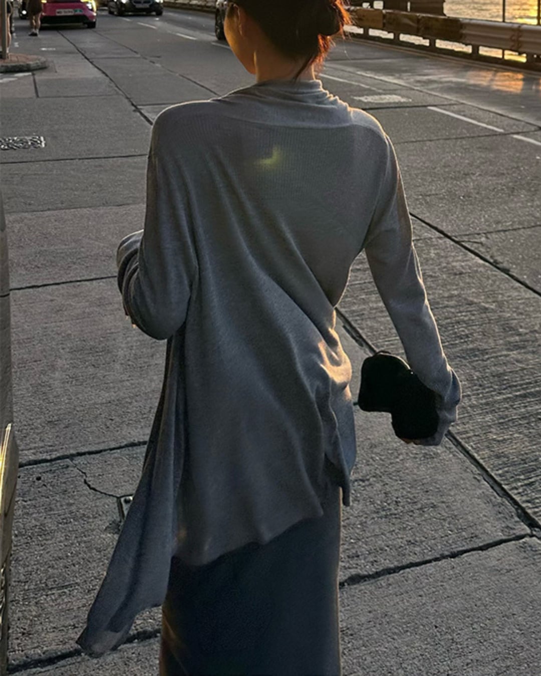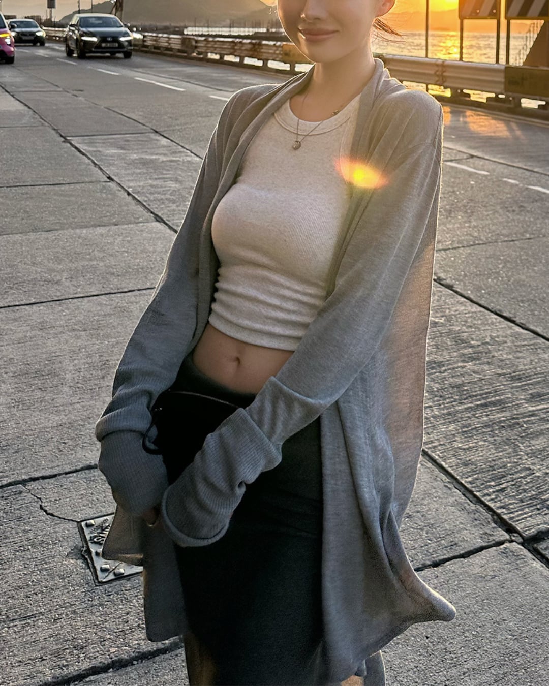 さらっと羽織れる薄手素材で仕立てた、万能ライトカーディガン。ドレープ感のある美シルエットが自然と体に馴染み、Tシャツやキャミの上にさっと羽織るだけで、こなれ感たっぷりのスタイリングに。軽やかで肌触りの良い素材は、春先から秋口まで長く活躍します。ワンピースにもパンツスタイルにもマッチする、デイリー使いに最適な一枚。色違いで揃えたくなるアイテムです。