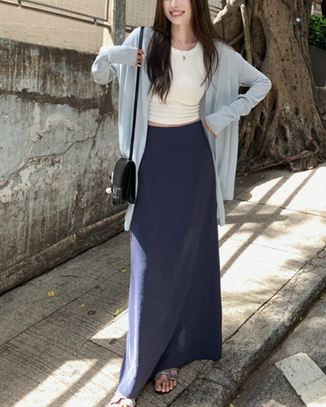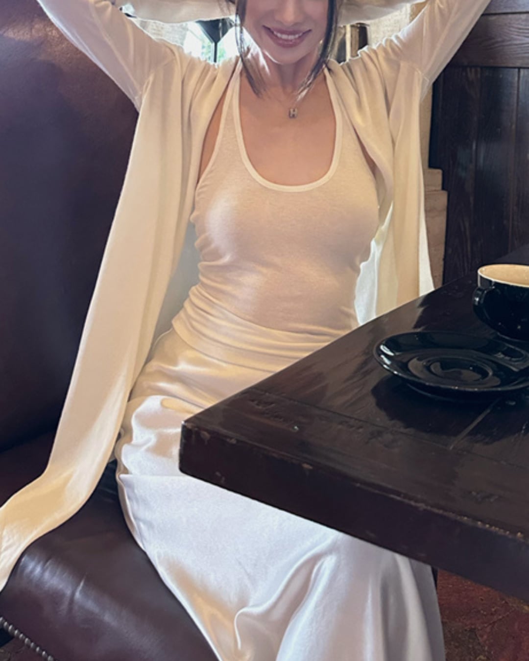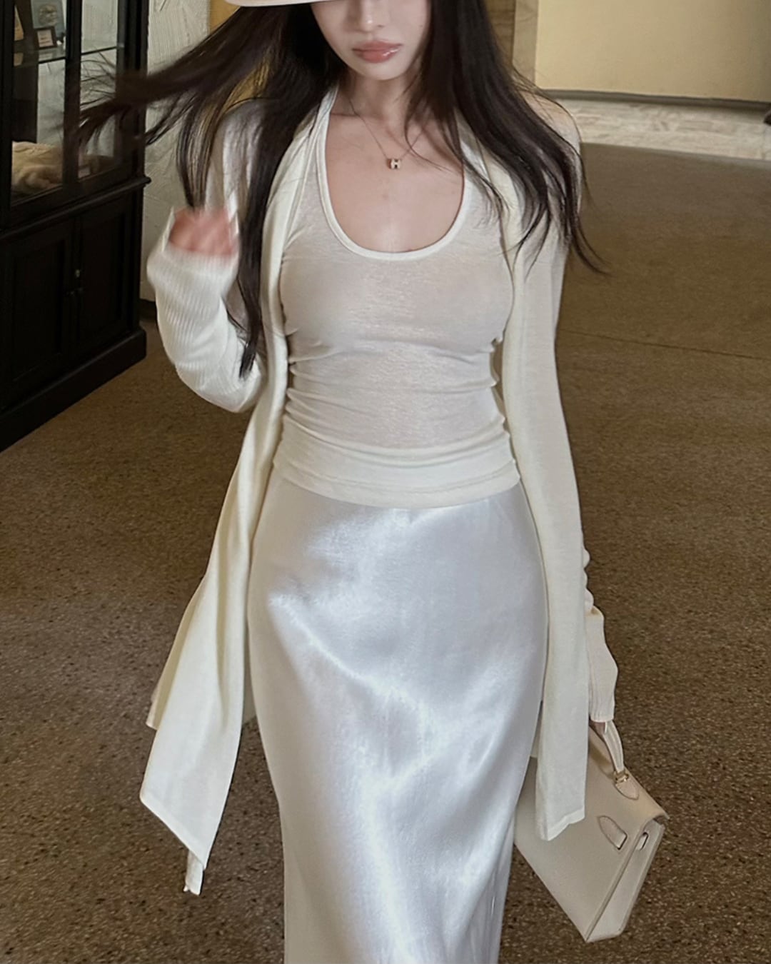 #ライトアウター #カーディガンコーデ #ロングカーデ #シンプル大人コーデ #テンセル素材 #柔らか素材 #3色展開