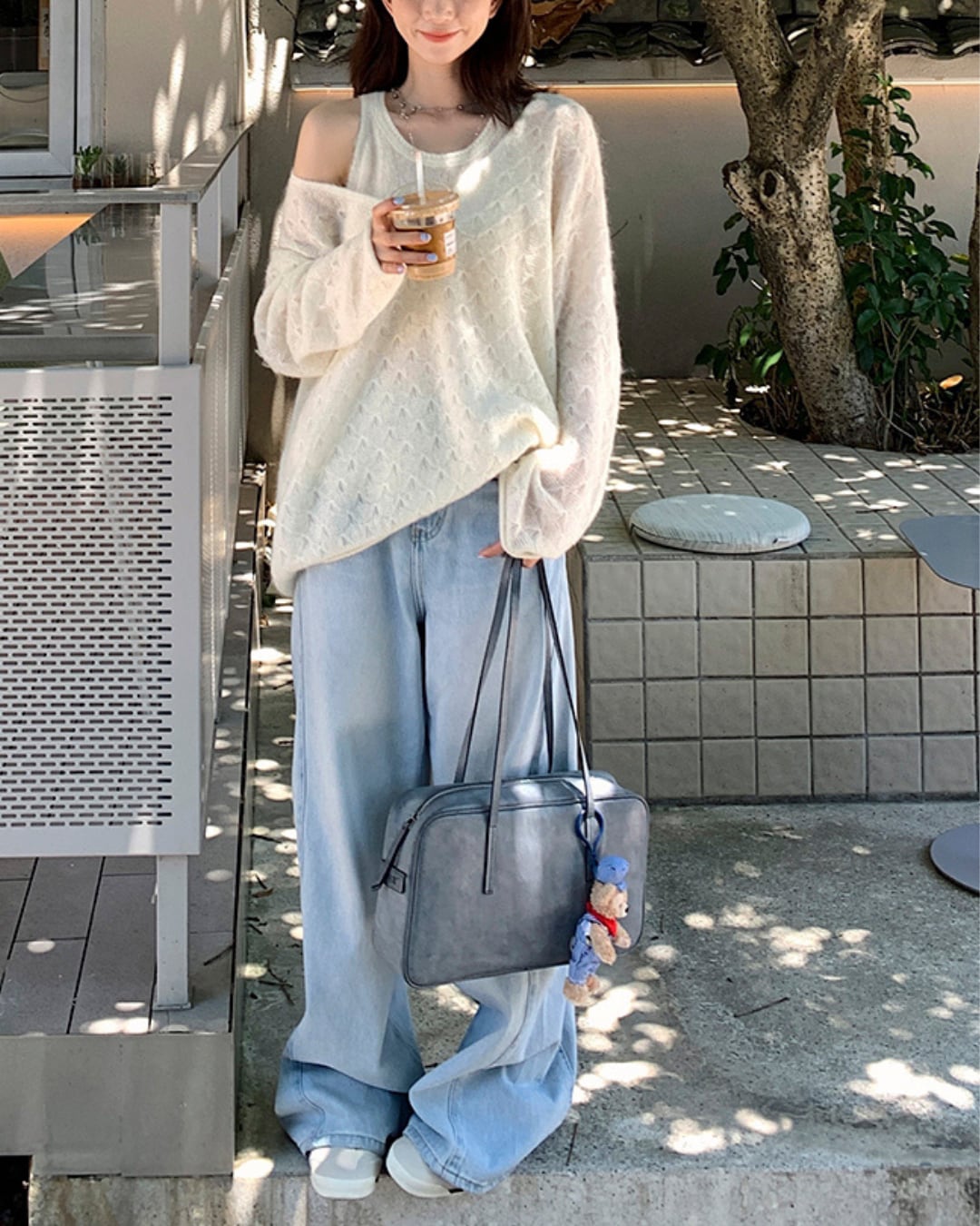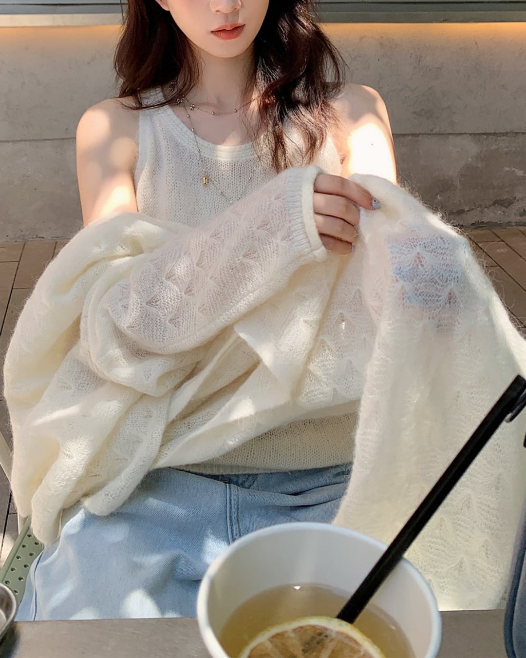 #透かし編みニット #モヘアライク #ふんわりシルエット #大人ガーリー #インナーセット #レイヤードトップス #ゆるコーデ