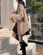 #ゆるコーデ #Vネックカーデ #大人ガーリー #ふわもこニット #秋冬コーデ #抜け感コーデ