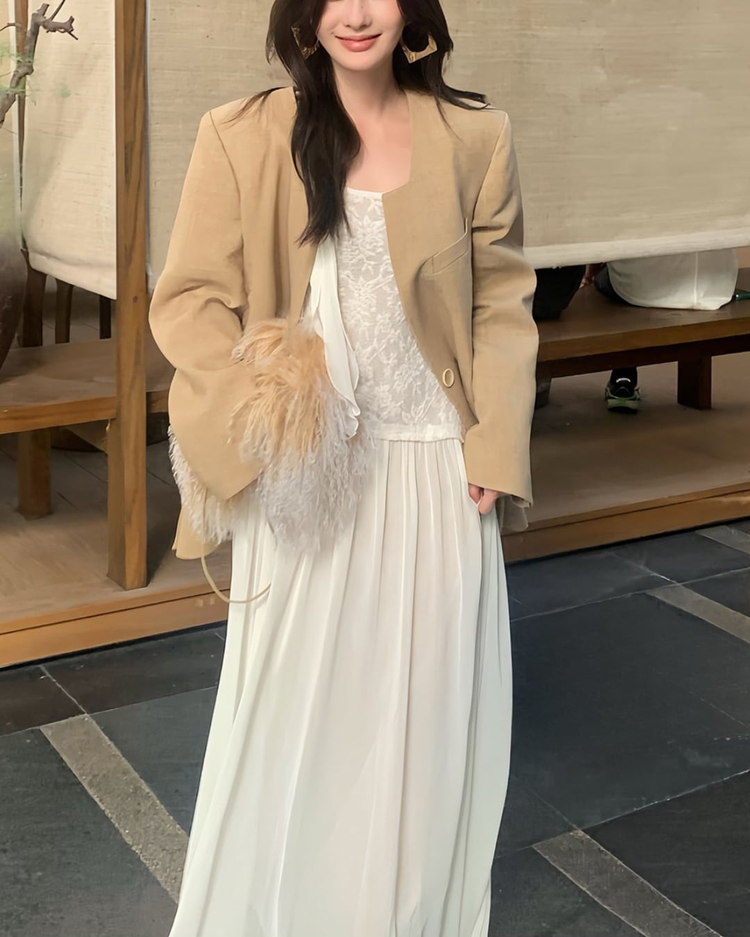 メンズライクなムードが魅力のテーラードオーバージャケット。肩に羽織るだけでこなれ感が出て、ワンピースやスカートとのミックススタイルにもぴったり。やや長めの丈感とゆったりしたサイズ感が、体のラインを程よくカバーしつつ美シルエットを演出します。通勤にも休日のお出かけにも対応できる、着回し力の高いアイテムです。