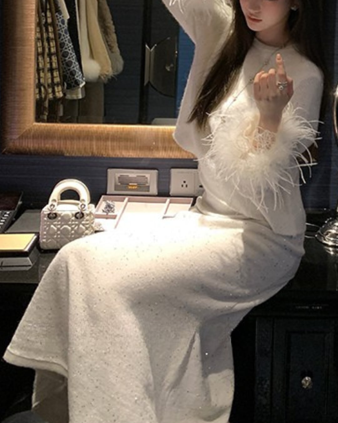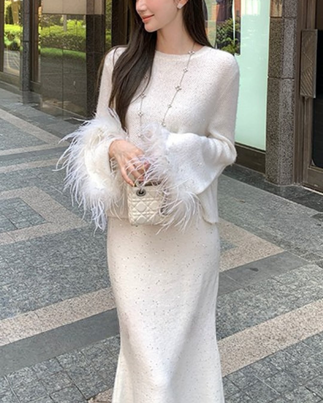 #ホワイトコーデ #マーメイドスカート #ラメスカート #美シルエット #フェミニンスタイル