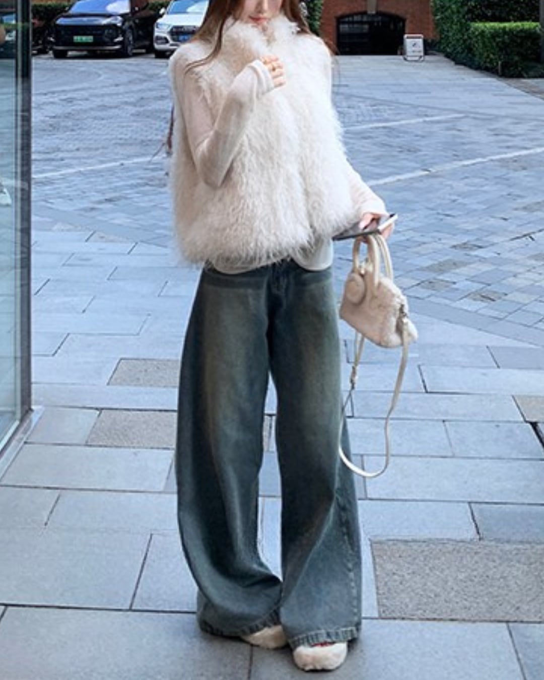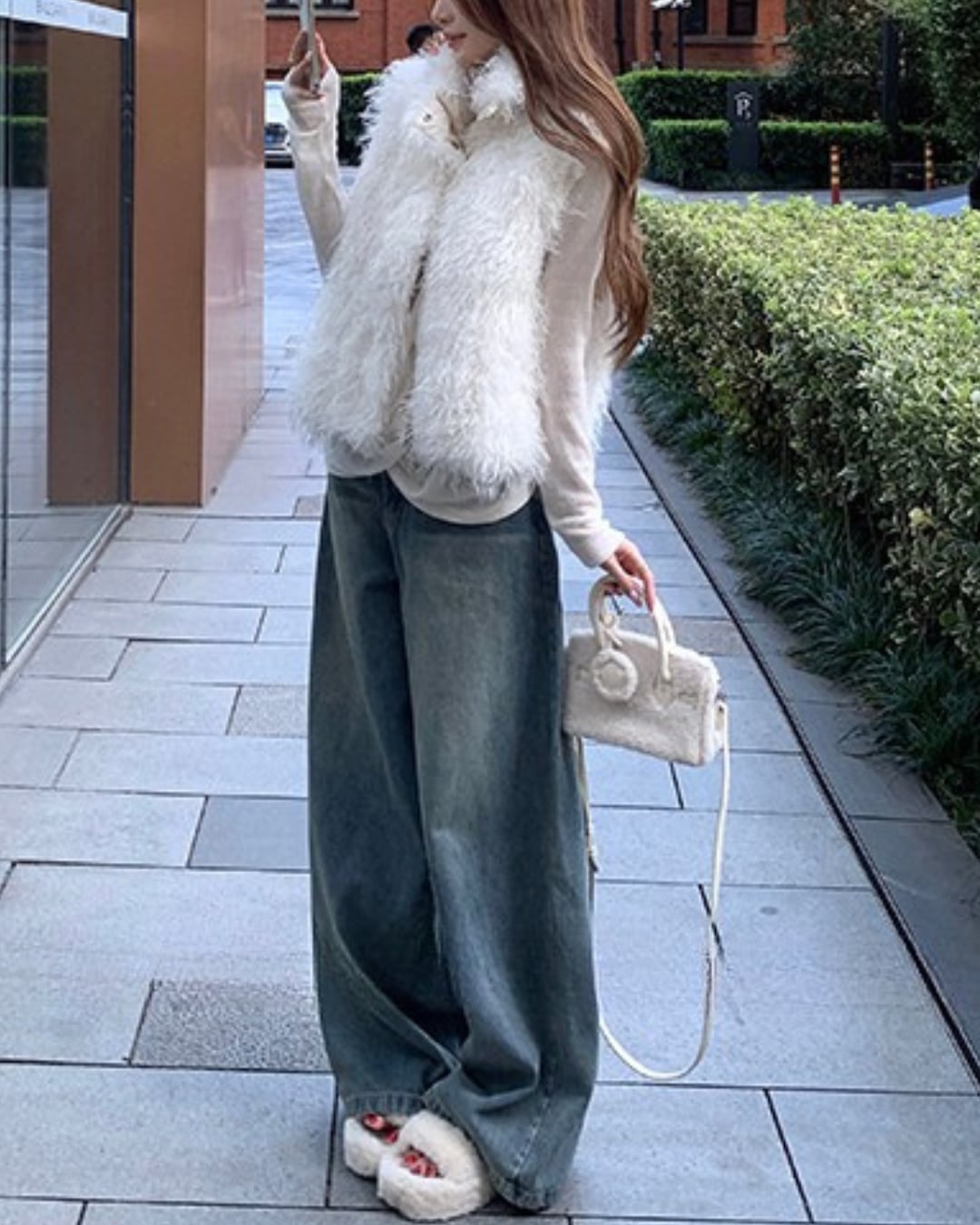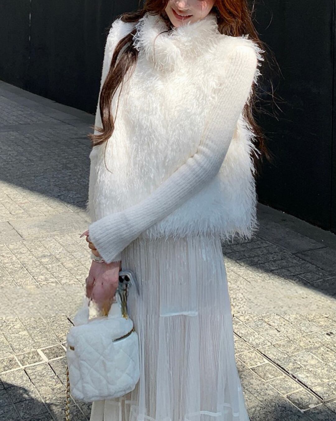 #ファーベスト #ふわもこ #ホワイトコーデ #ショートベスト #大人ガーリー