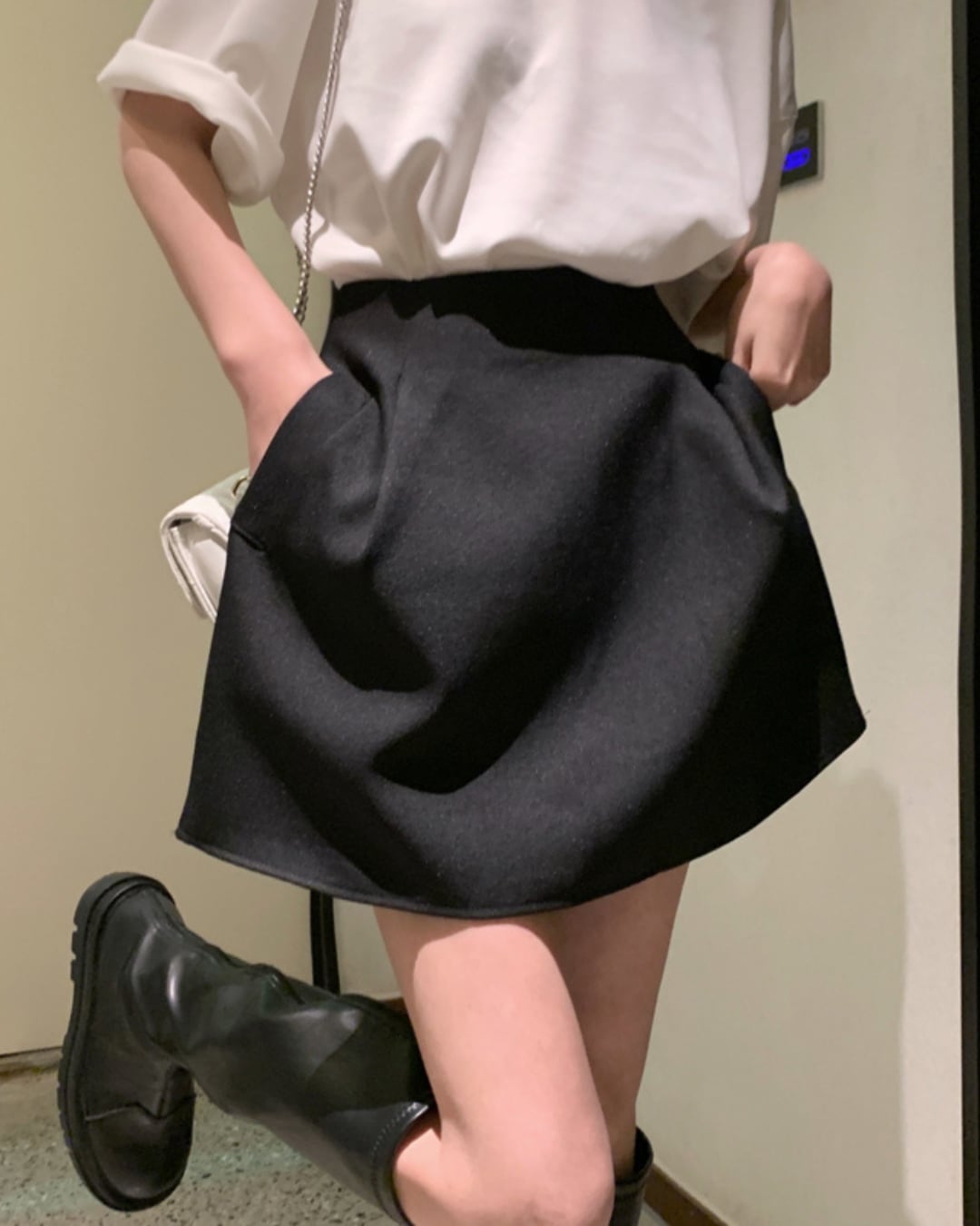 #Aライン #ショートスカート #美脚効果 #ポケット付き #ベーシックカラー
