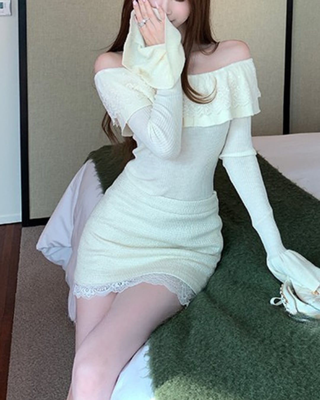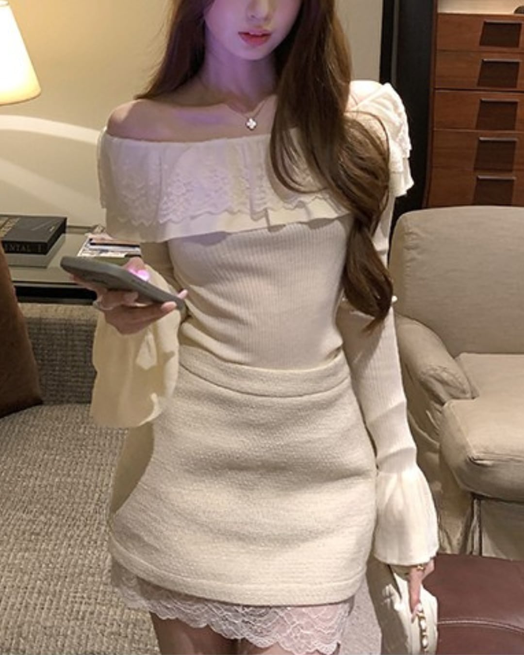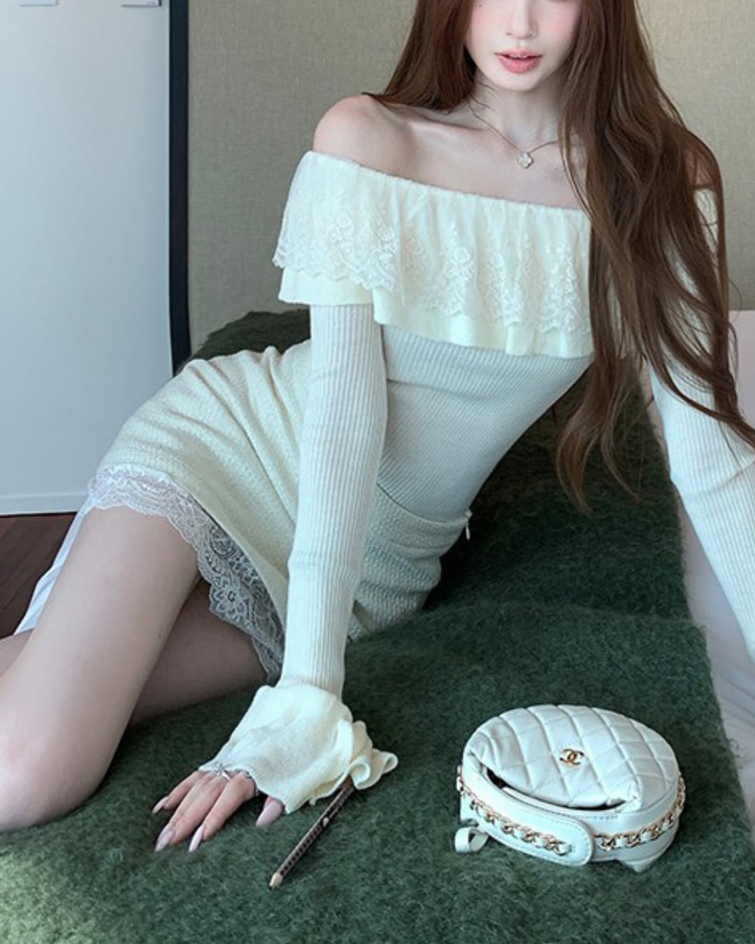デコルテを美しく魅せるオフショルデザインに、レースフリルをあしらった大人フェミニントップス。フィット感のあるリブニットがボディラインをきれいに演出しつつ、甘さと上品さを兼ね備えた仕上がりに。デートやお出かけはもちろん、特別なシーンにも華を添える一枚です。スカート合わせでとことんガーリーに、パンツ合わせで抜け感をプラスしても◎