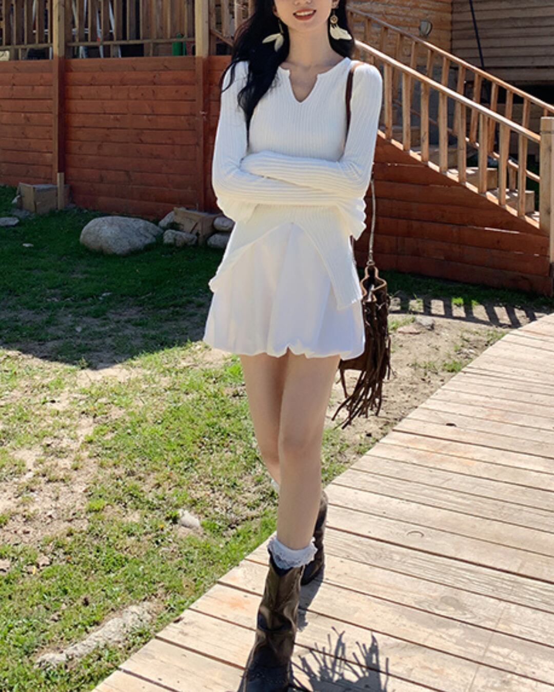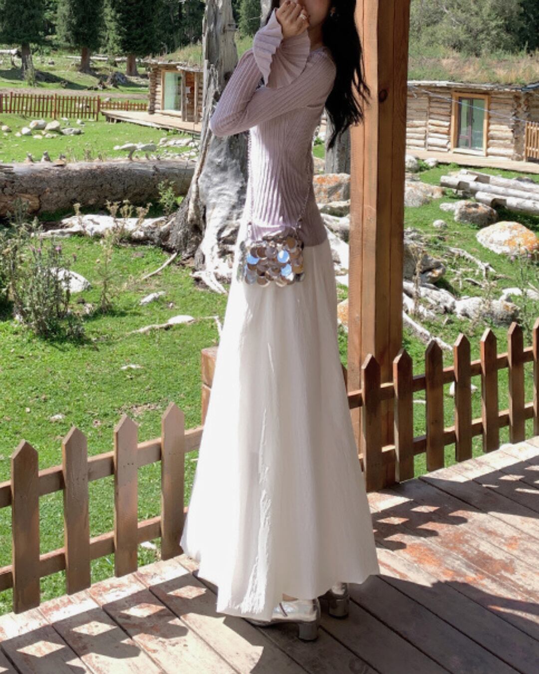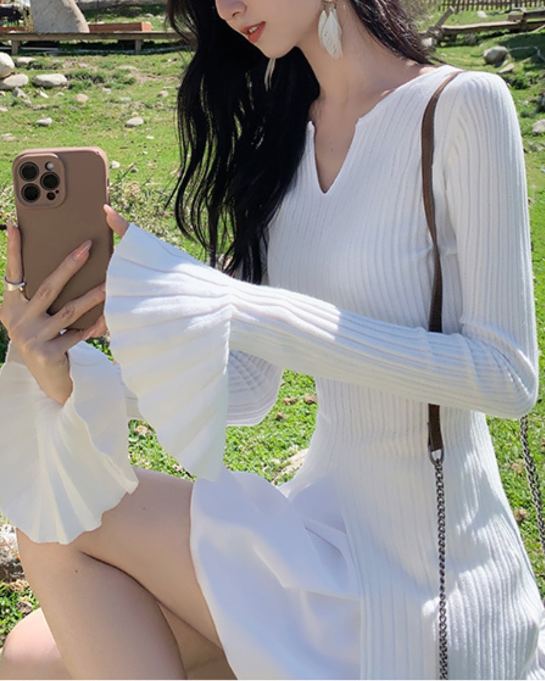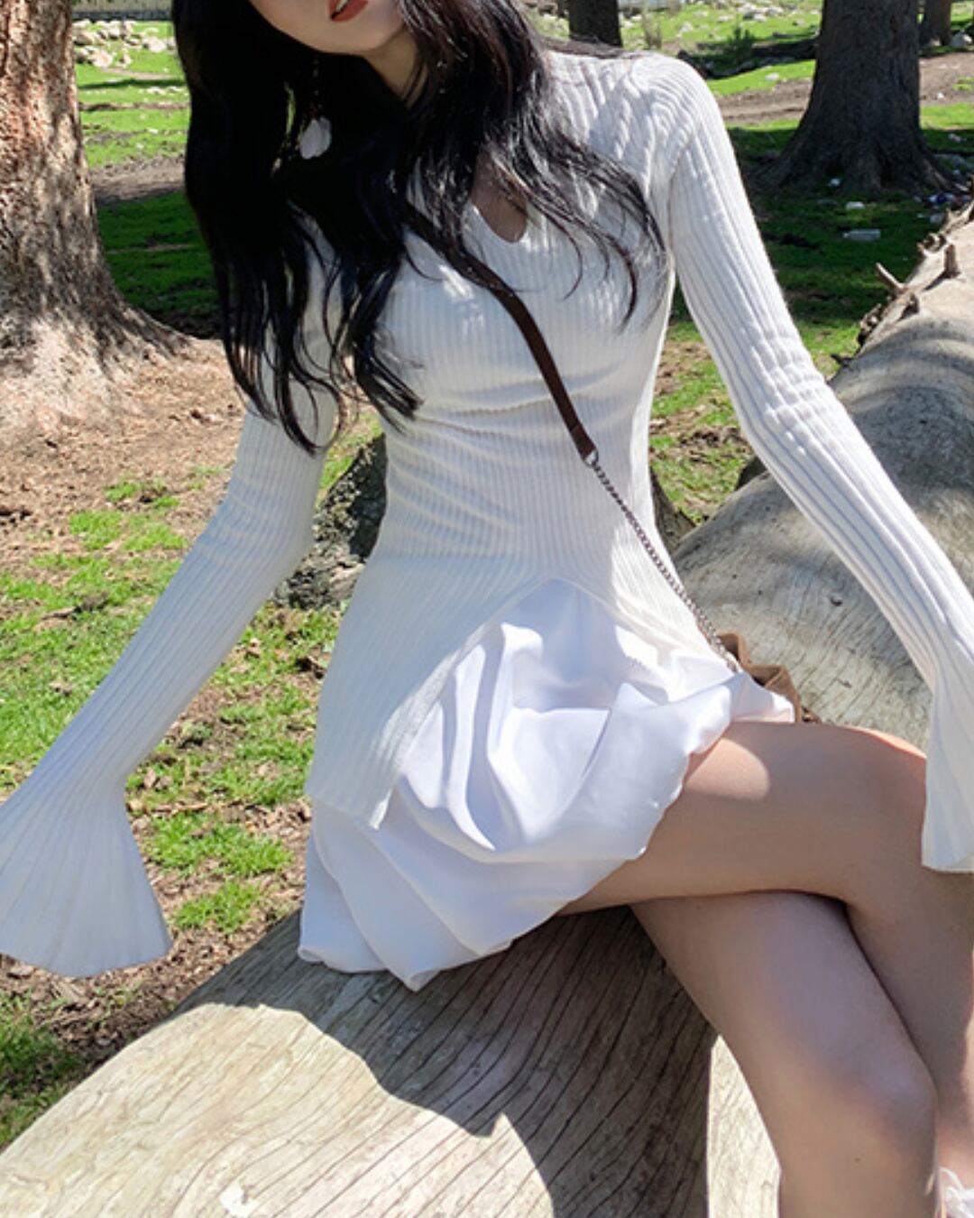 #フレアスリーブ #細リブニット #ウエストスリット #大人ガーリー #着痩せトップス #秋コーデ #フェミニンカジュアル