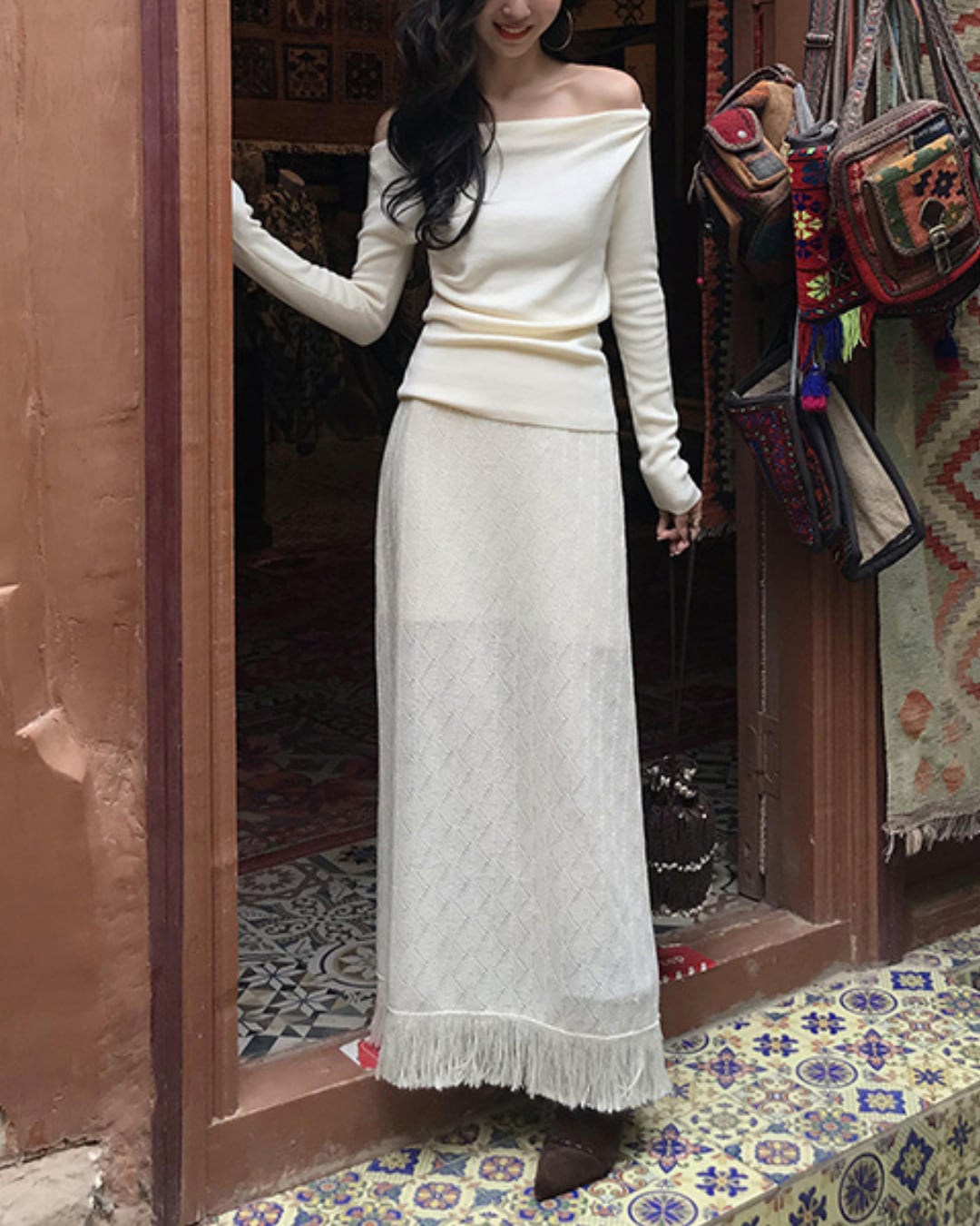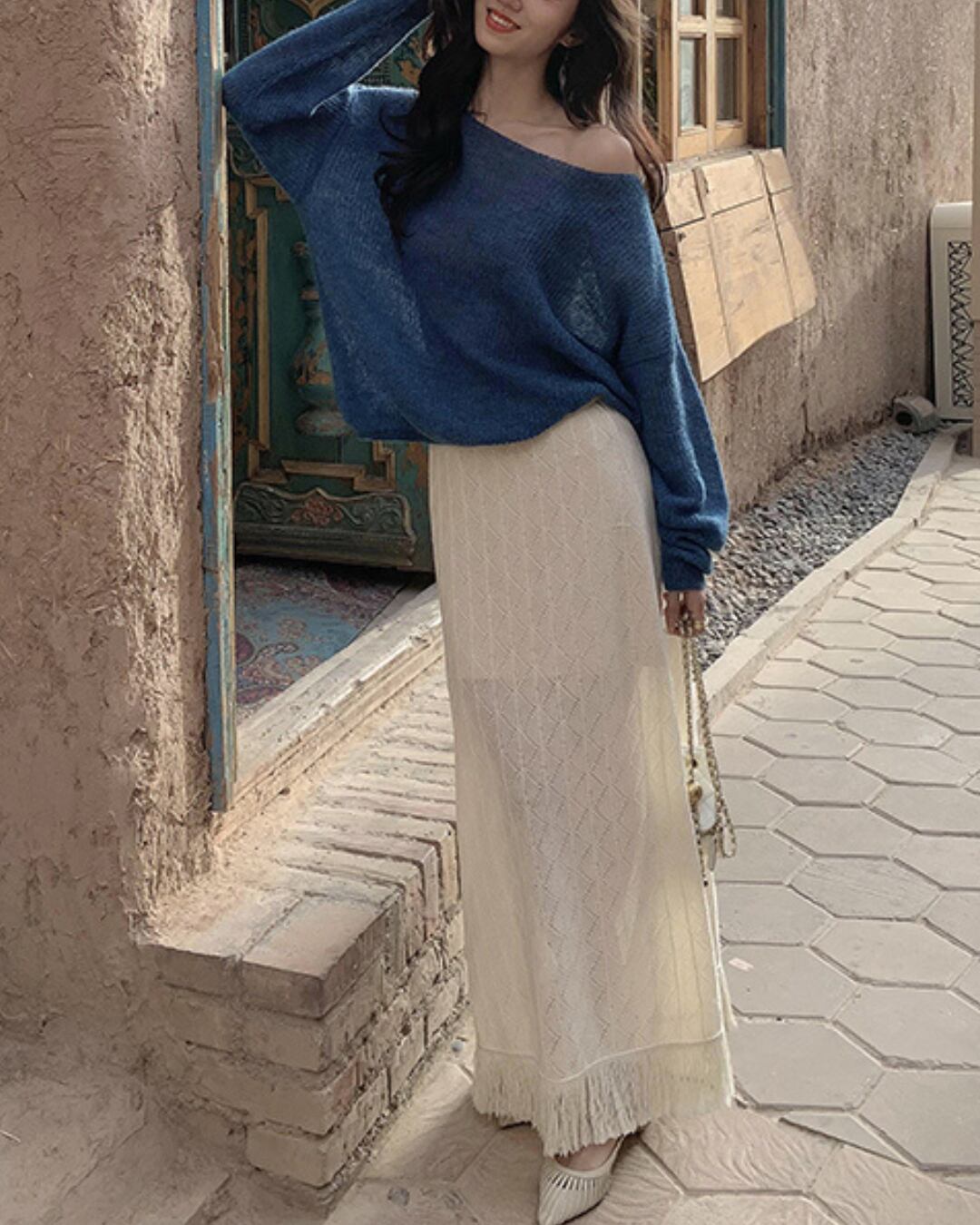 繊細なかぎ針風レースが魅力のロングスカート。透け感のある編地と立体感のあるフラワーパターンが上品で、動くたびにふんわり揺れる裾のフリンジがフェミニンムードを高めてくれます。裏地付きで透けすぎず、軽やかさと安心感を両立。ボディラインにやさしく沿うタイトなシルエットで、脚長効果も抜群。ニットやブラウスと合わせるだけで、女性らしい大人ガーリースタイルが完成します。
