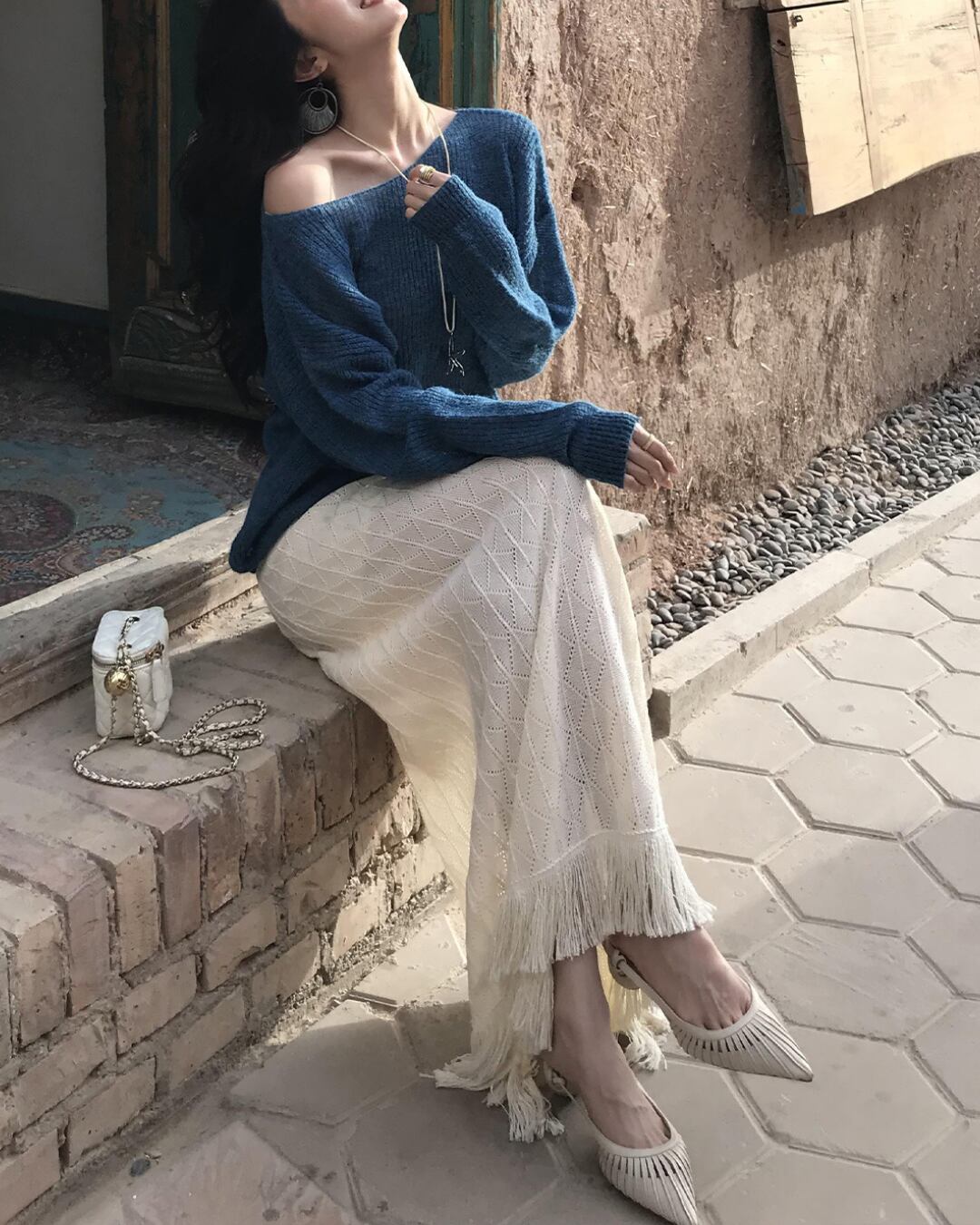 #フリンジスカート #レーススカート #ロングスカート #透け感レース #脚長効果 #大人ガーリー #上品コーデ