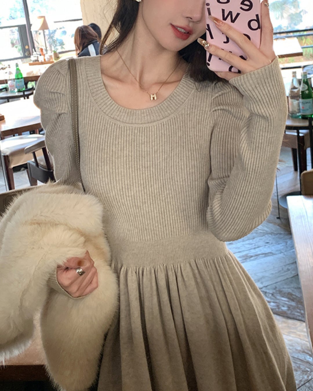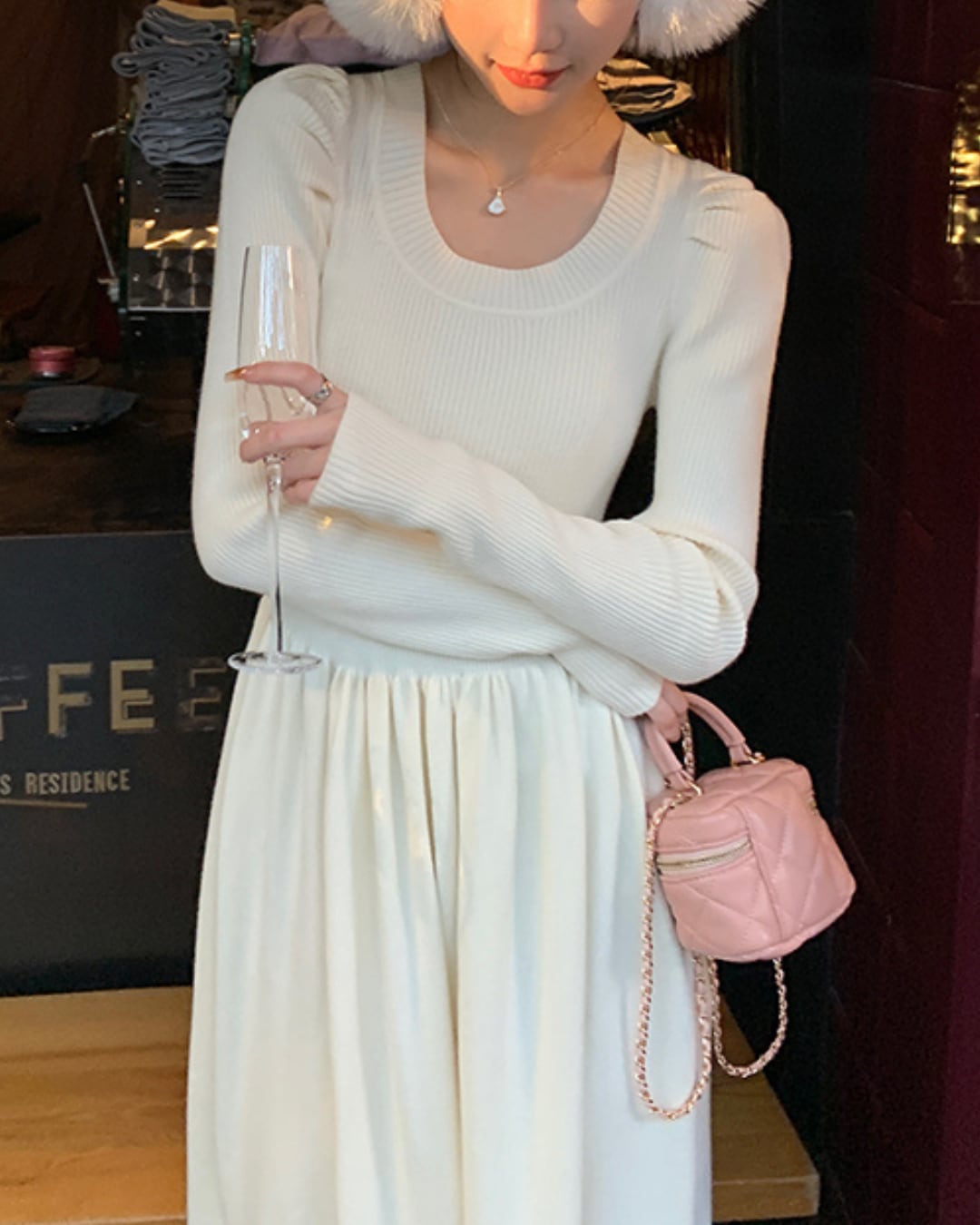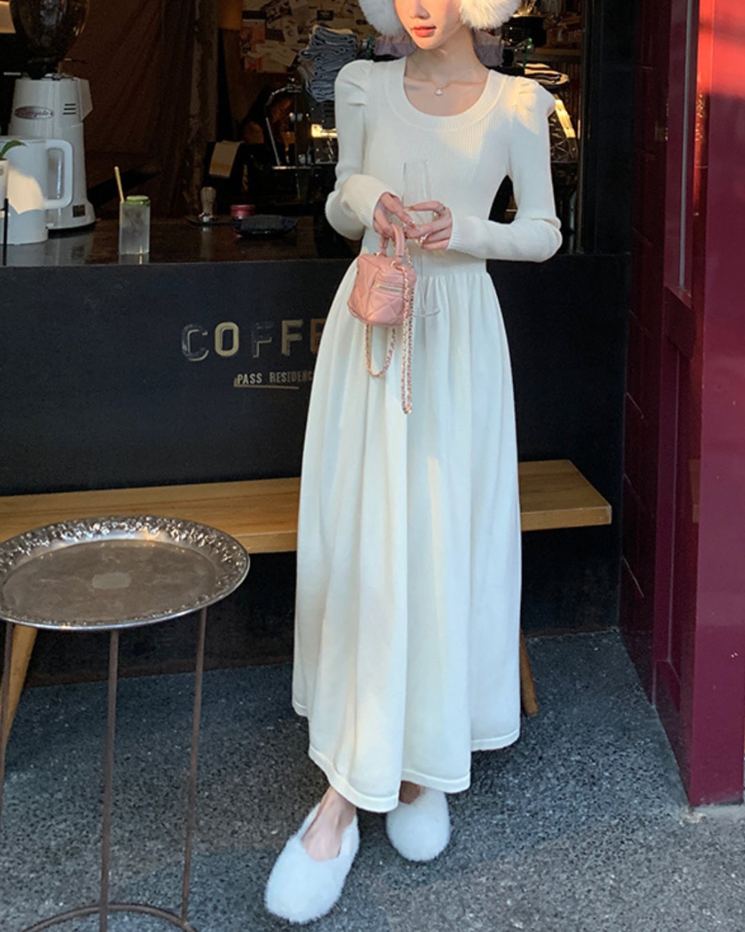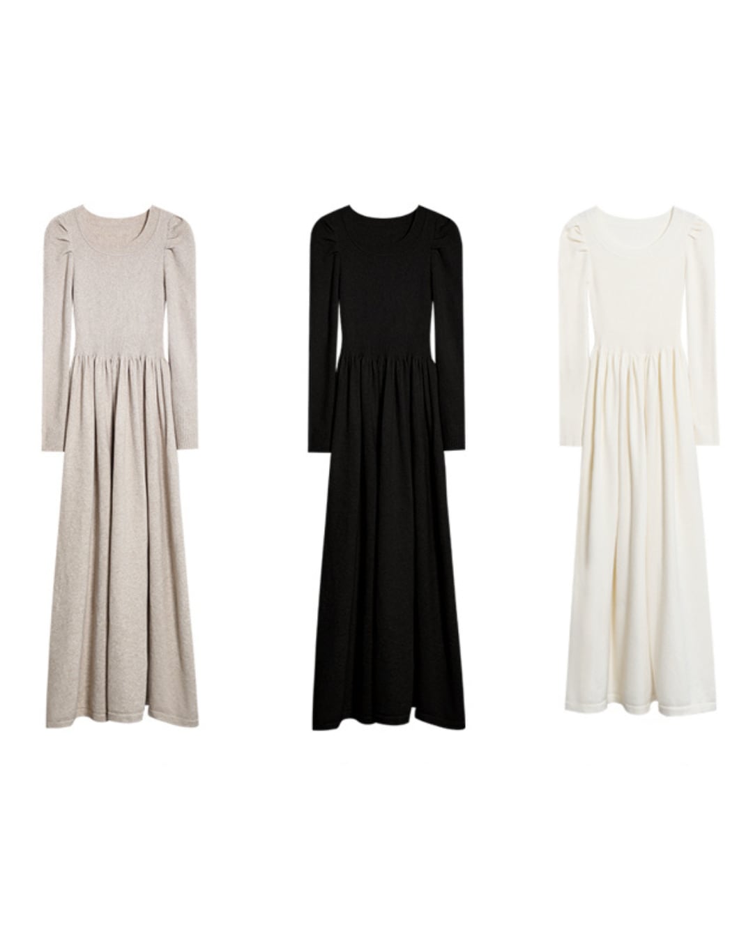 一枚で上品な印象を叶える、シンプルで美シルエットなロングワンピース。ウエストギャザーで自然にくびれを演出し、落ち感のある素材がふんわりと広がるスカートラインを描きます。肩に軽くギャザーを入れることで、さりげないフェミニンさもプラス。柔らかく暖かみのあるニット素材で、秋冬のお出かけスタイルにぴったりな一枚です。