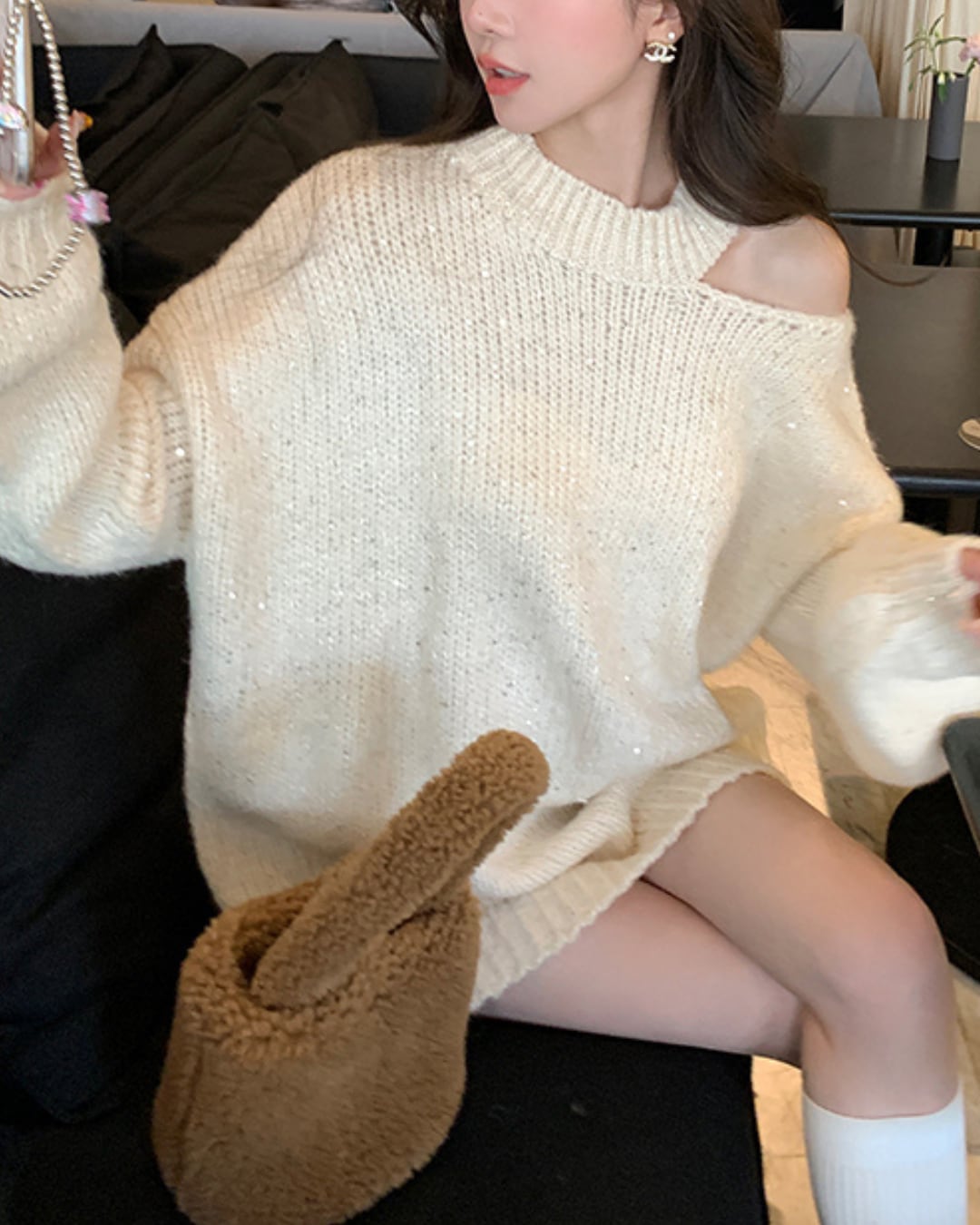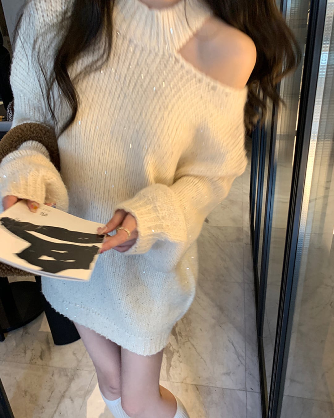 #ラメニット #ワンショルダー #抜け感コーデ #ゆったりシルエット #ニットワンピース #大人ガーリー #秋冬アイテム