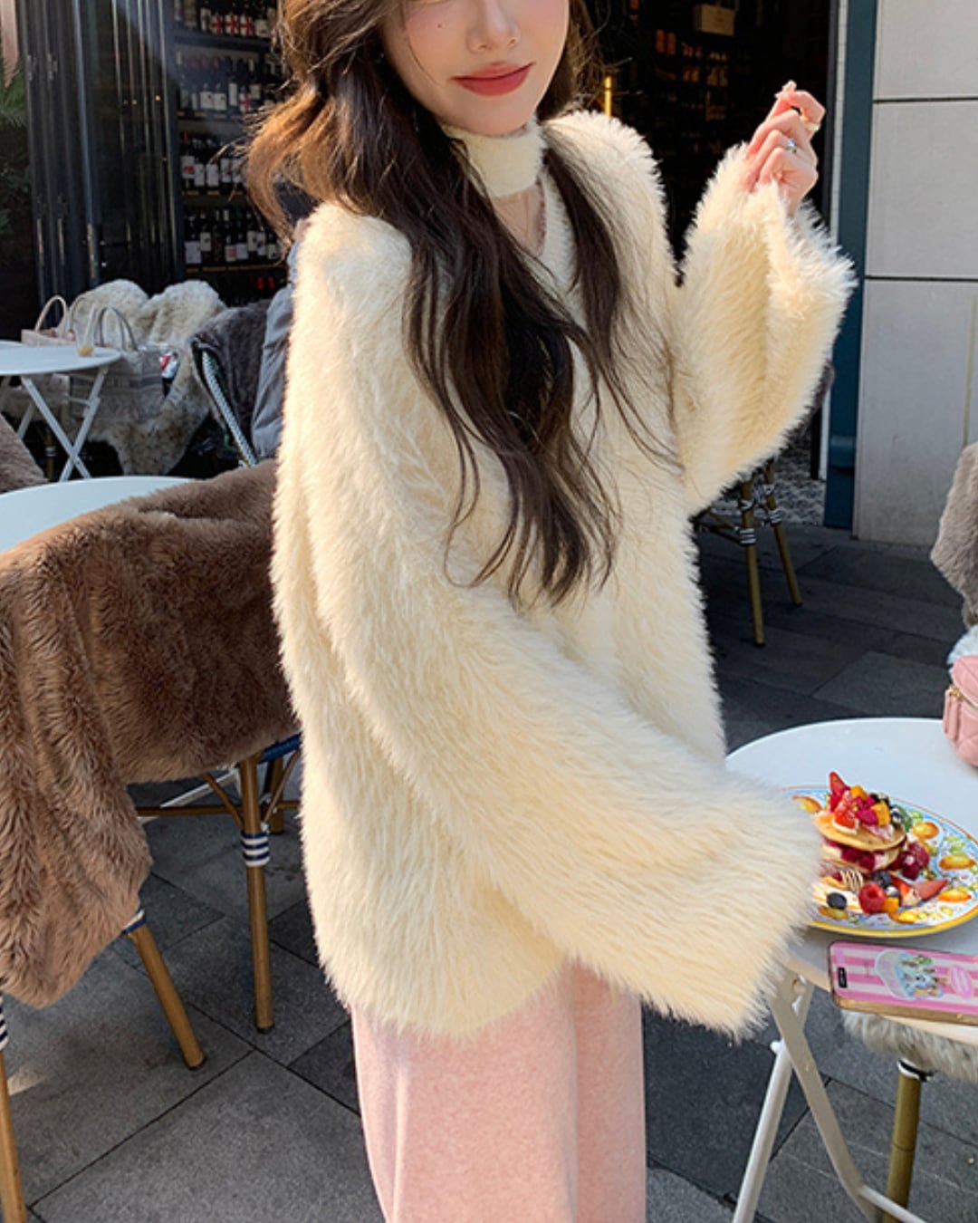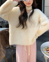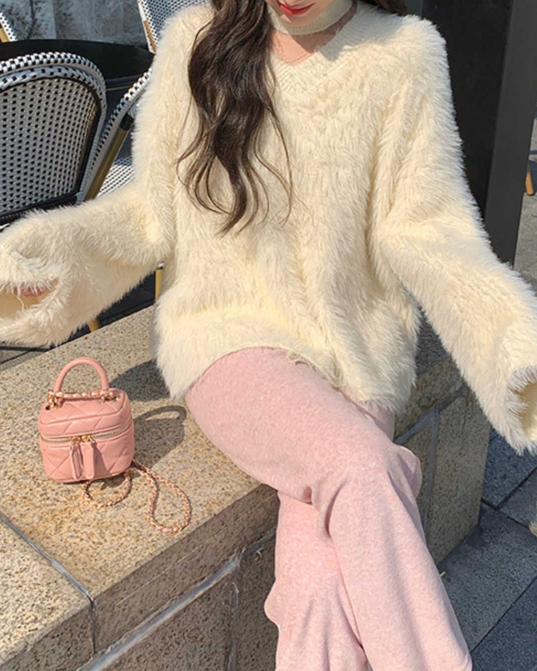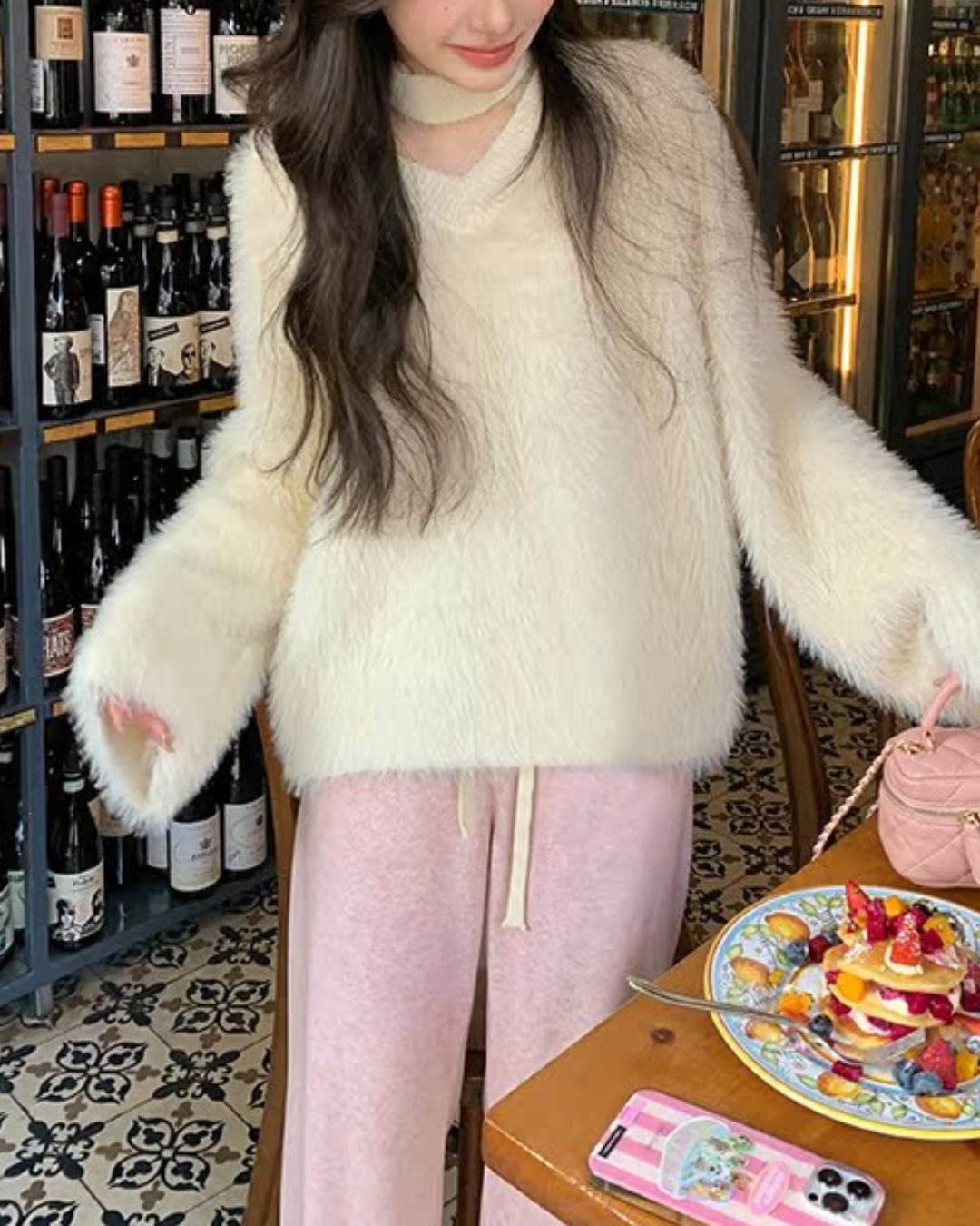思わず触れたくなるようなふわふわフェザー調の生地が魅力のニットトップス。ゆるっとしたルーズなシルエットで体型カバーも叶い、抜け感のある大人ガーリースタイルにぴったり。Vネックラインが顔まわりをすっきりと見せ、セットの同素材チョーカーでトレンド感もプラス。ワンマイルコーデにもデートにも活躍してくれる1枚です。