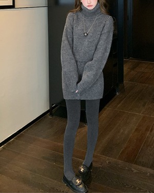 #ニットコーデ #セットアップ #ネックウォーマー付き #冬コーデ #ゆるカジュアル #大人ガーリー