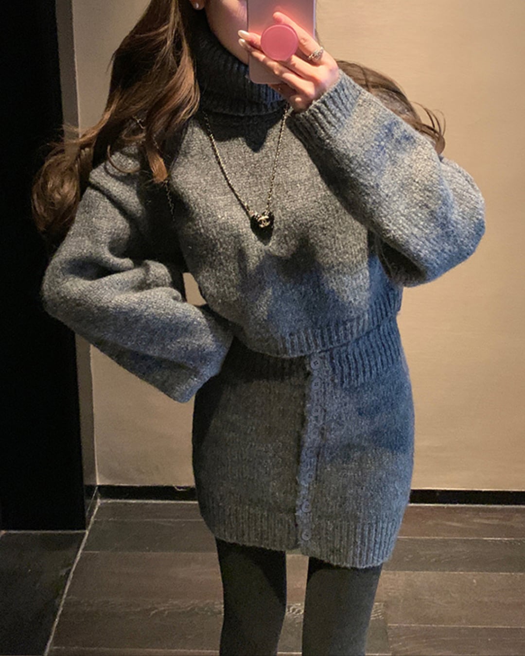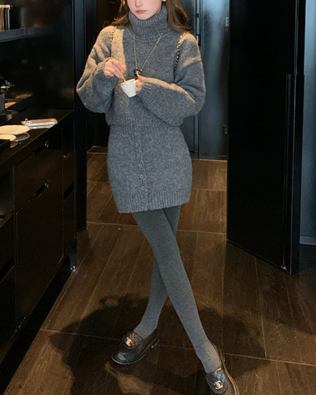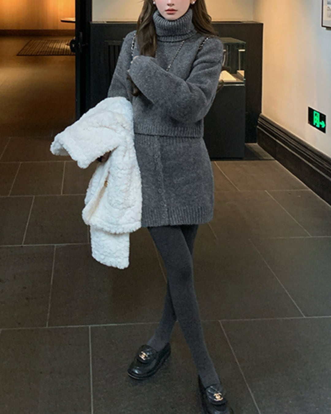 ふわふわと柔らかな風合いが魅力の3点セット。ゆったり感のあるニットトップスは、裾のリブやフロントボタンが女性らしさを引き立てます。スカートは後ろにボタンが並ぶデザインで、バックスタイルまで抜かりなく可愛い仕上がりに。さらに、同素材のネックウォーマー付きで防寒性も◎。セット使いはもちろん、それぞれ単品でも着回せる万能アイテムです。