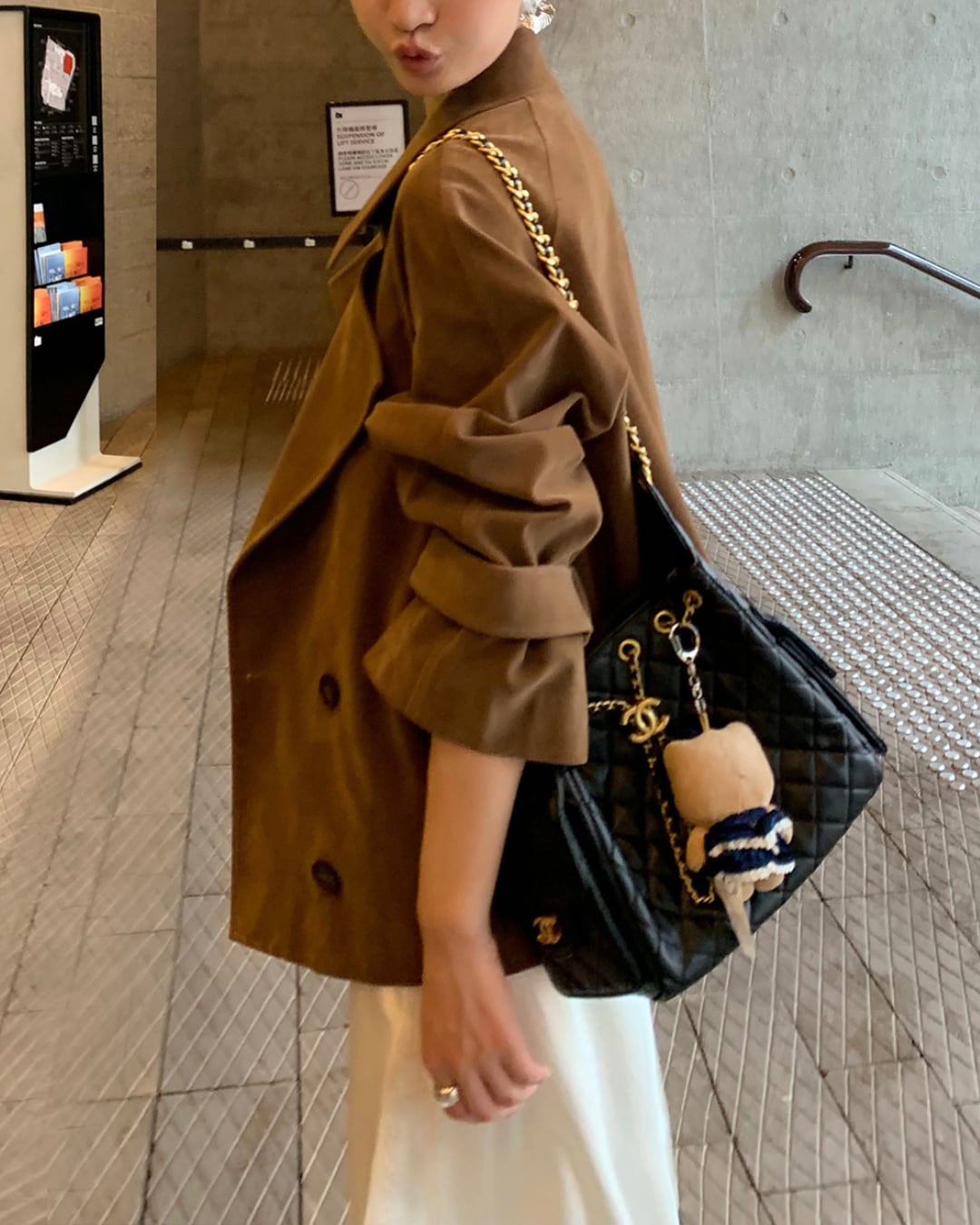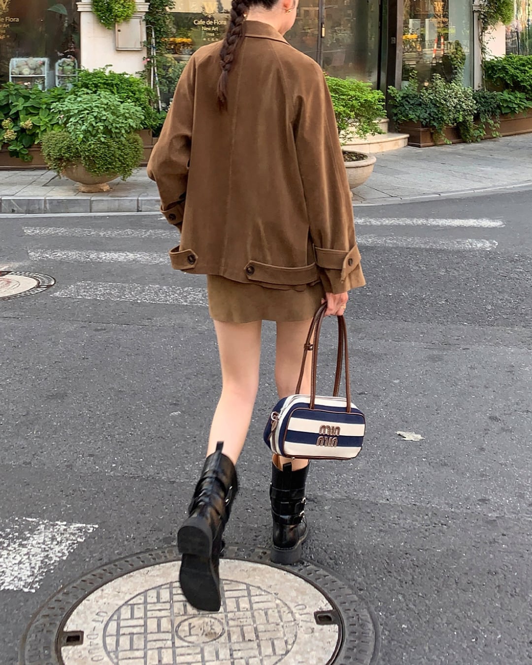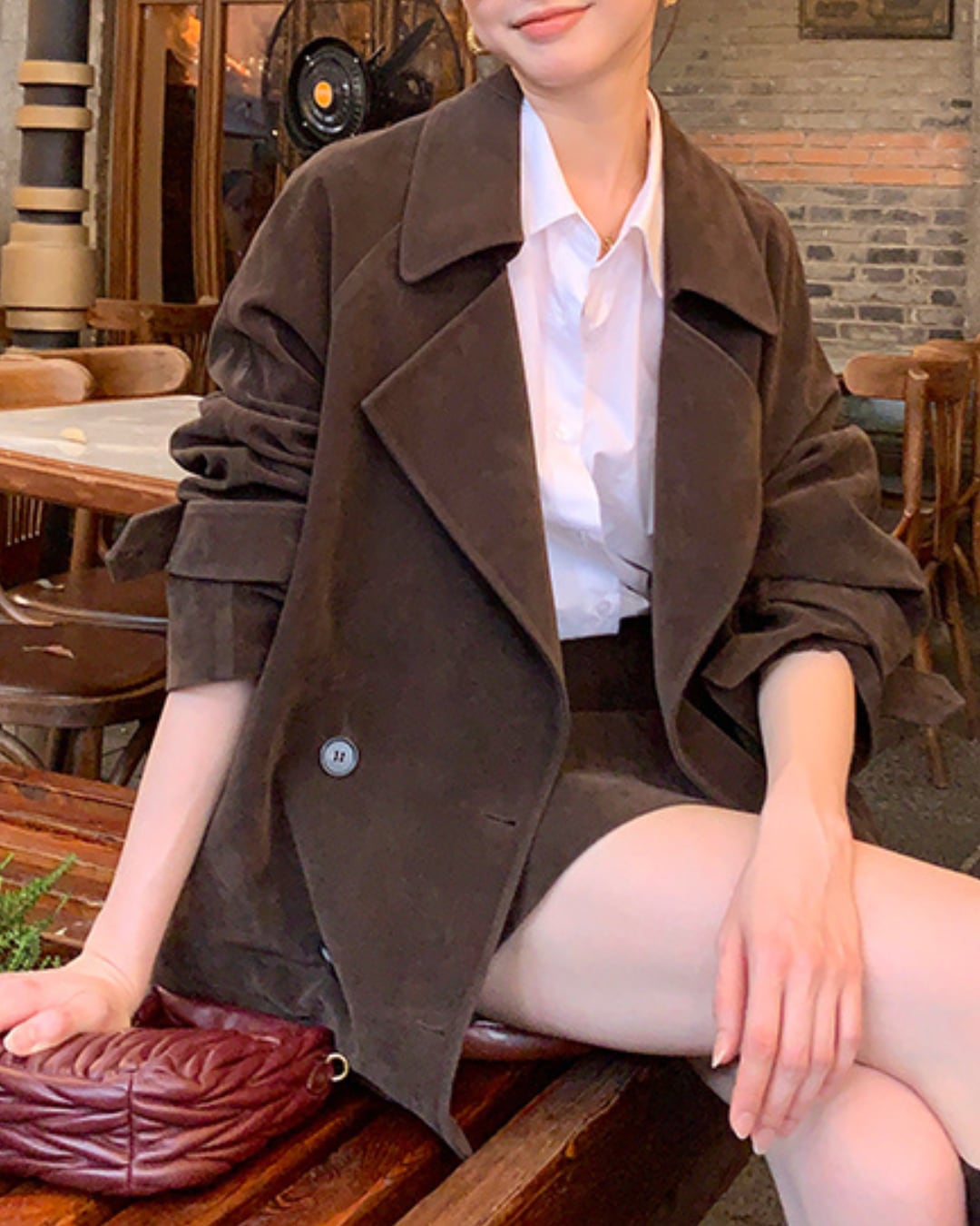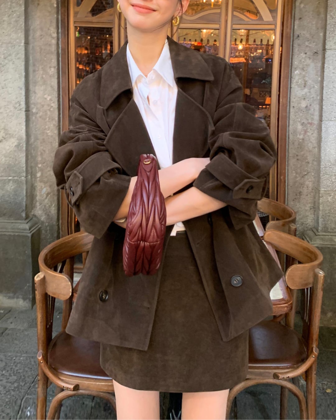 #セットアップコーデ #スエード調 #ダブルボタンジャケット #大人ガーリー #ブラウンコーデ #秋冬コーデ #着回し抜群