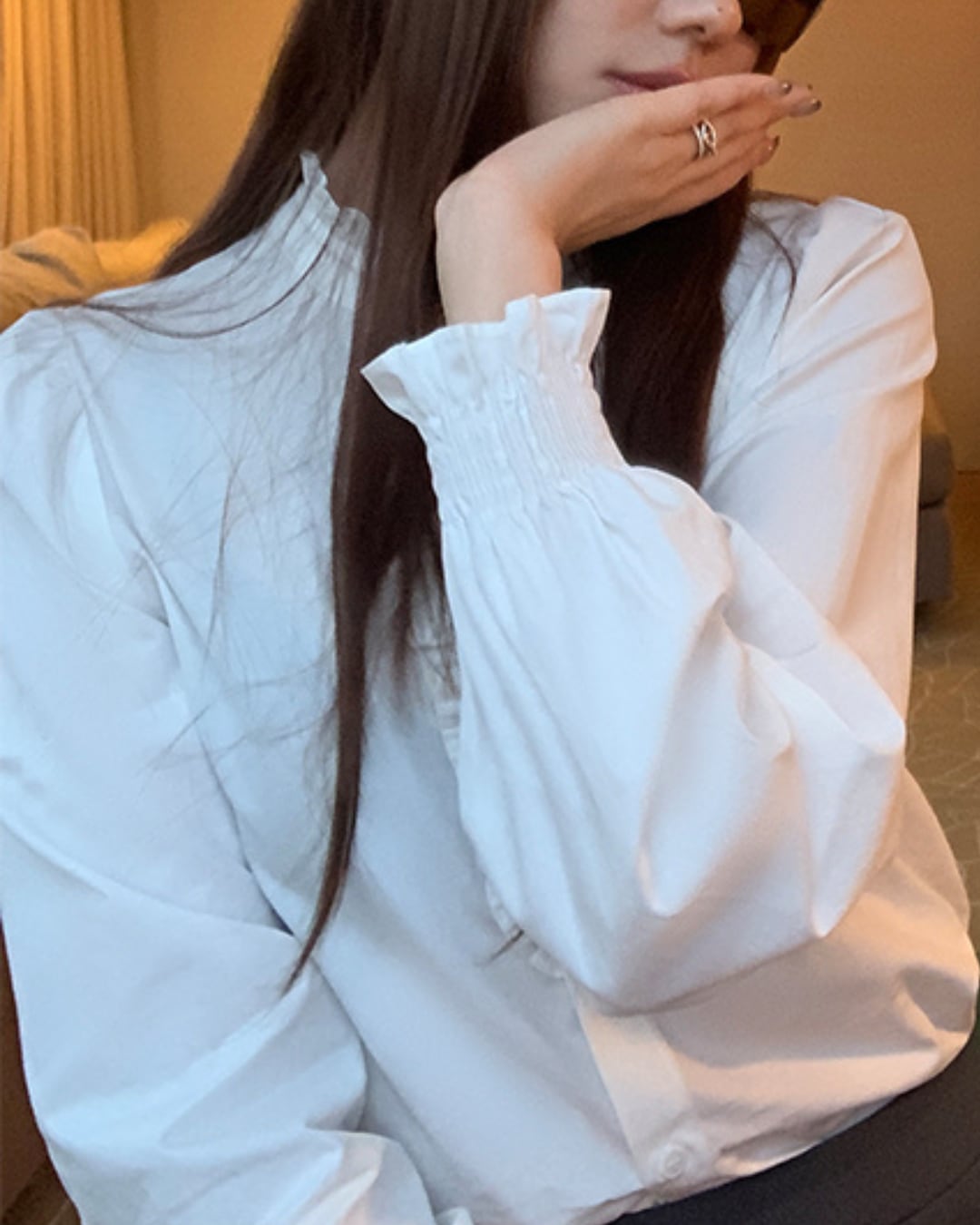 #フリルブラウス #大人ガーリー #ライクラ混 #フェミニンコーデ #上品ブラウス #オフィスコーデ #レイヤードにも