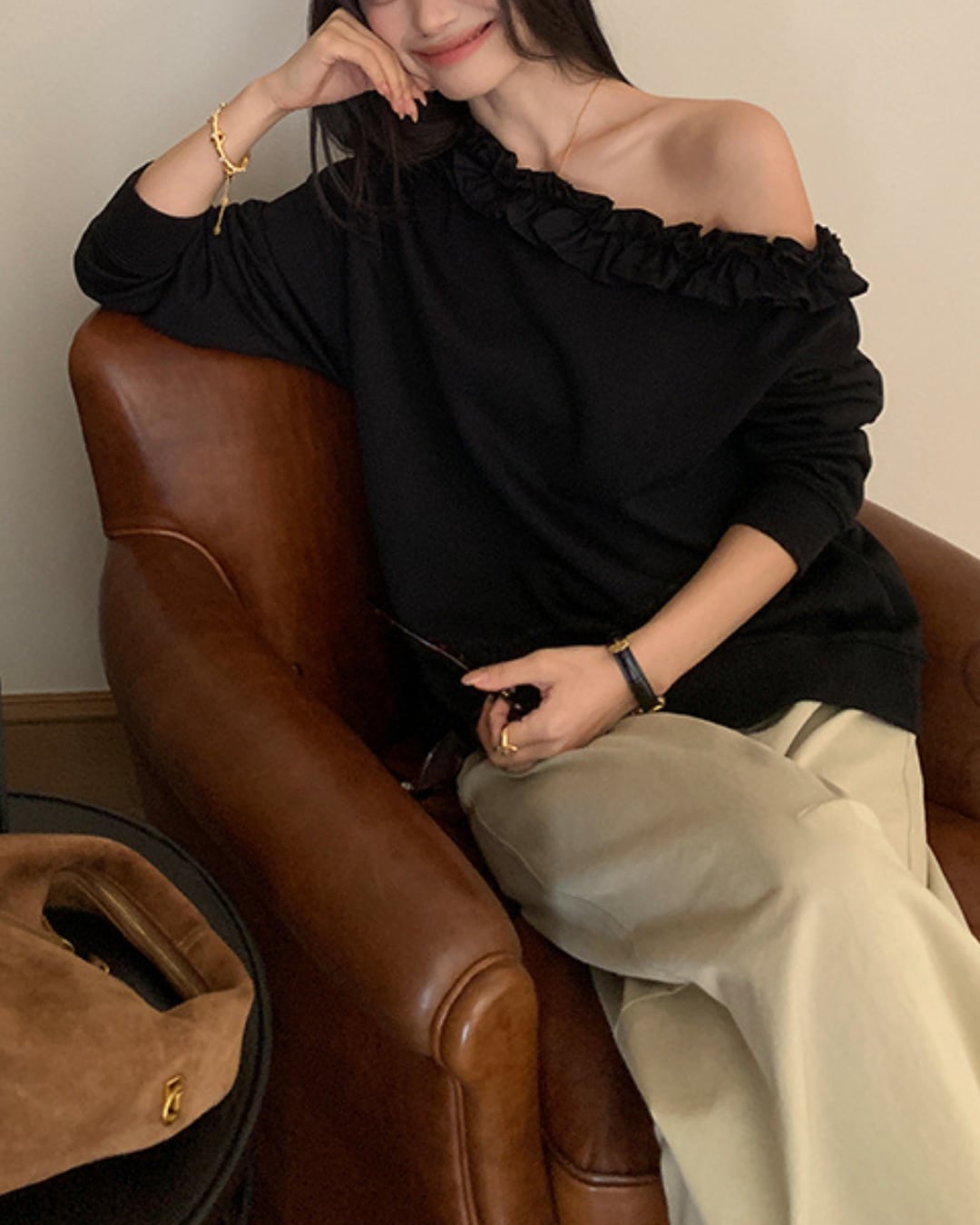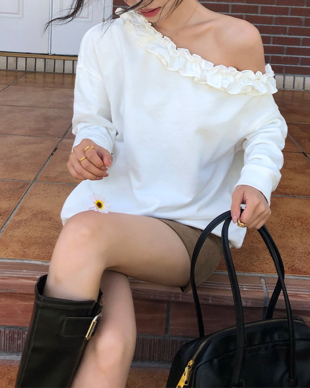 #フリルスウェット #オフショル風トップス #大人ガーリー #デコルテ見せ #2wayトップス #着心地抜群 #スウェットコーデ