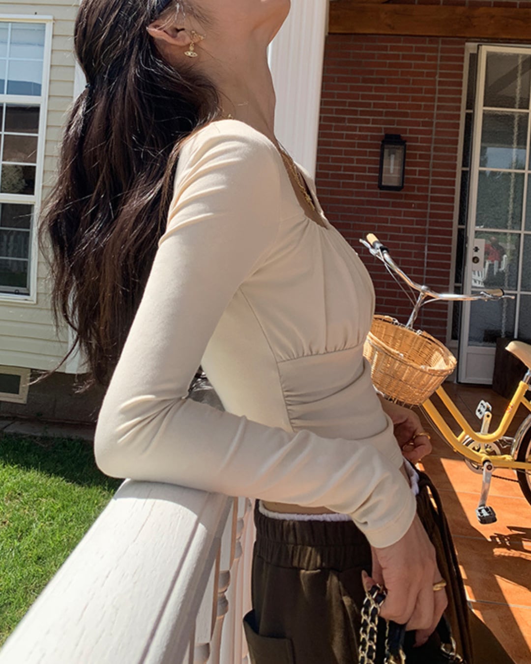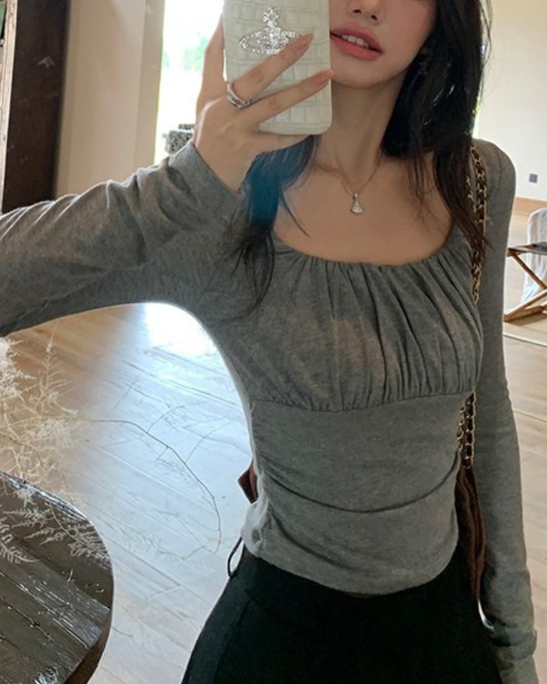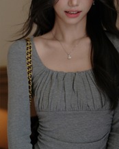 #スクエアネック #ギャザーデザイン #フェミニントップス #大人ガーリー #細見えシルエット #長袖カットソー #着回し万能 #ベーシックカラー