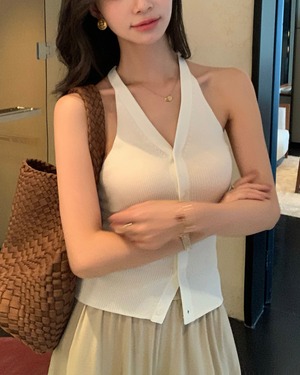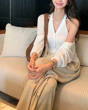 #2点セット #サマーニット #カーディガン #ホルターネック #大人ガーリー #抜け感スタイル #美デコルテ #ゆるシルエット #着回し力抜群