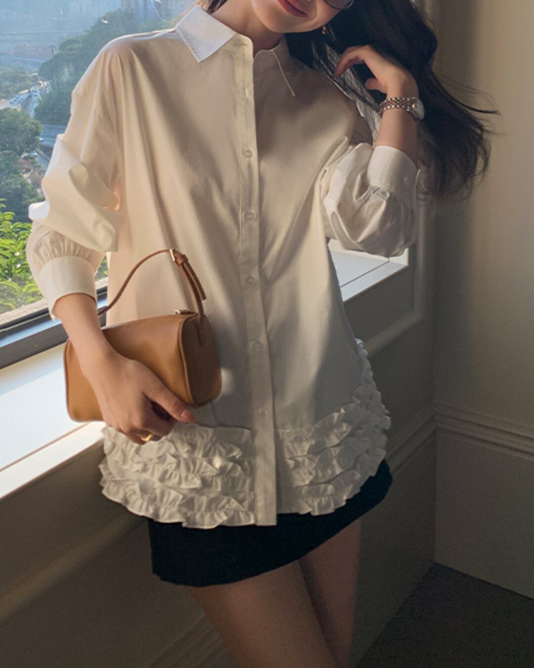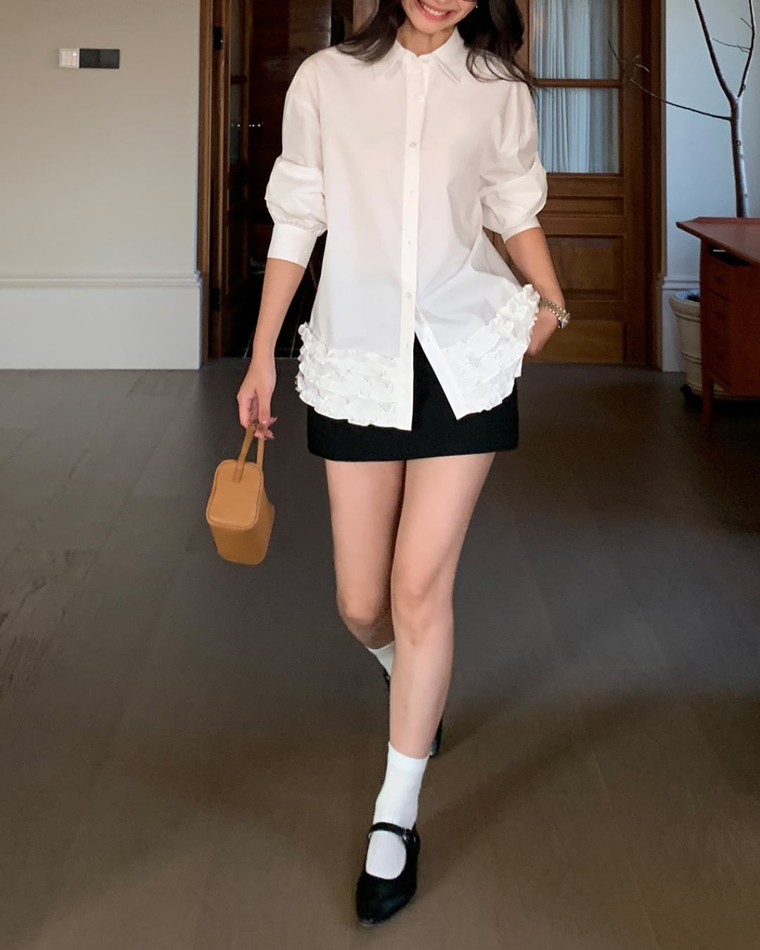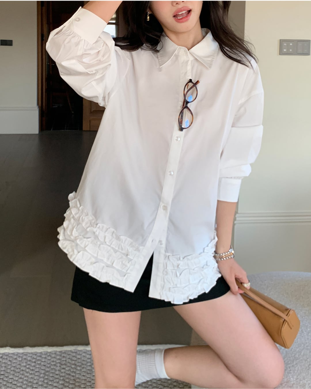 #フリルブラウス #白シャツコーデ #大人ガーリー #甘めカジュアル #着映えトップス #韓国ファッション