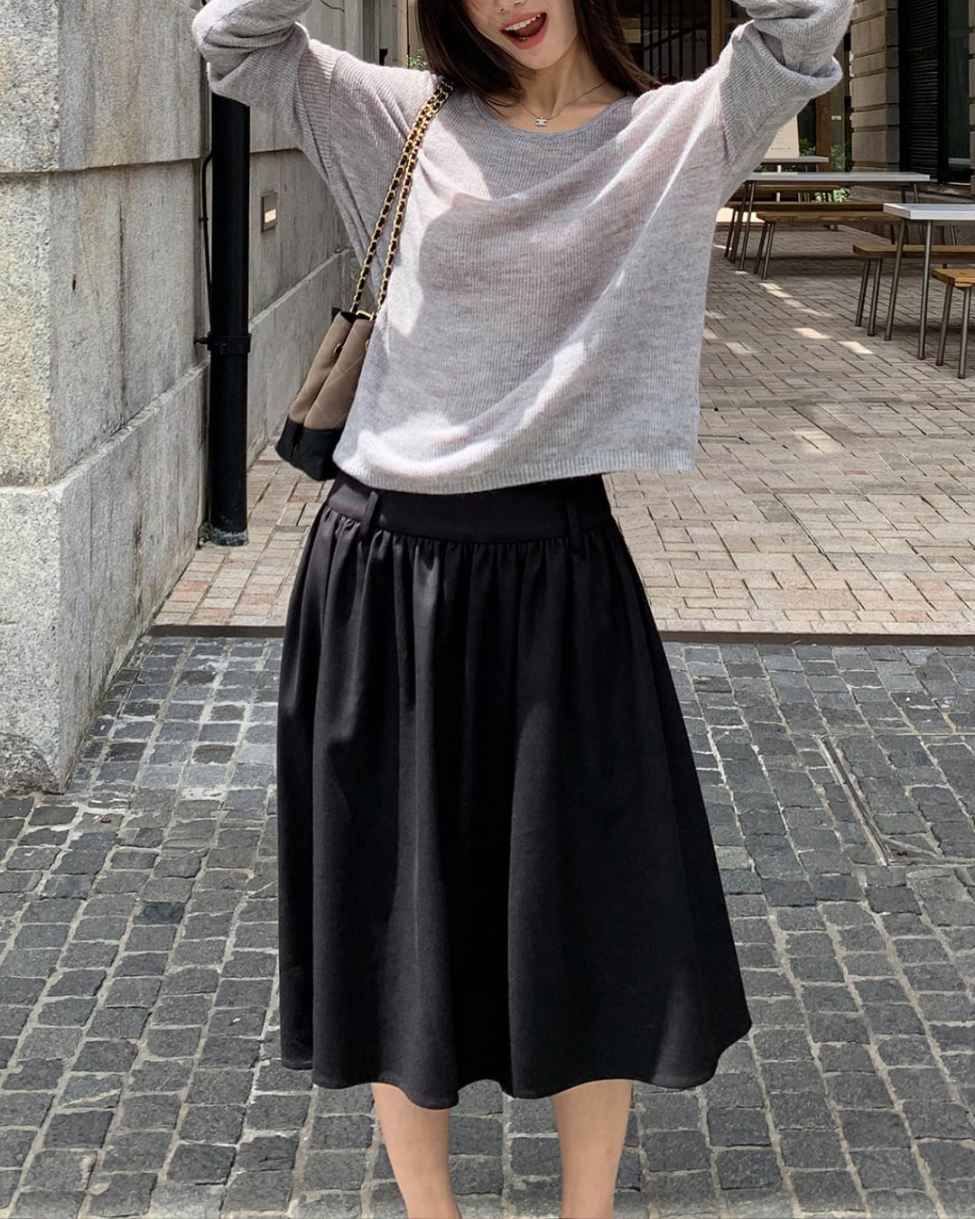 #ハイウエストスカート #フレアスカート #Aラインスカート #大人ガーリー #脚長効果 #ミディ丈スカート #着痩せコーデ