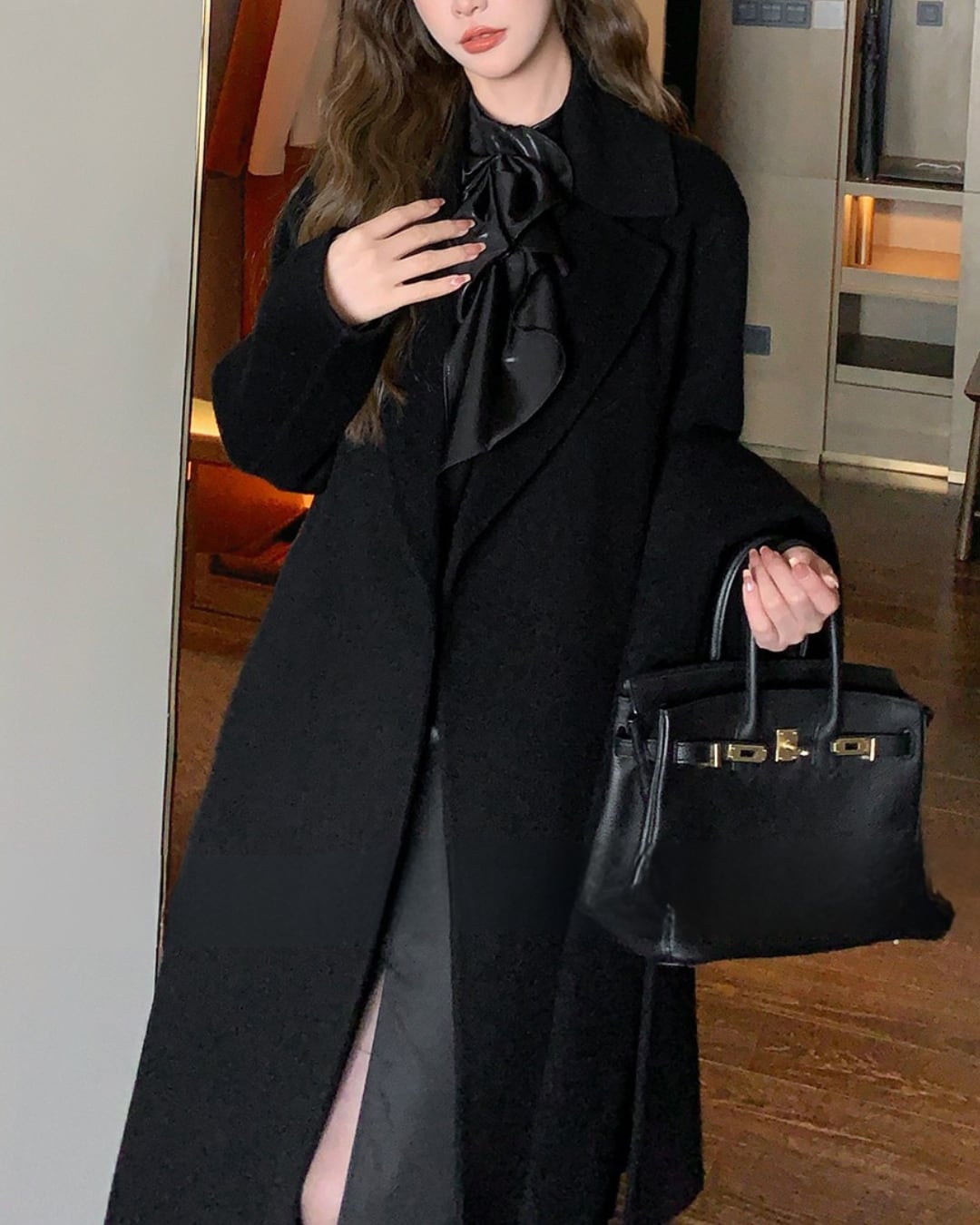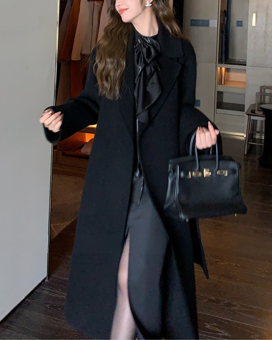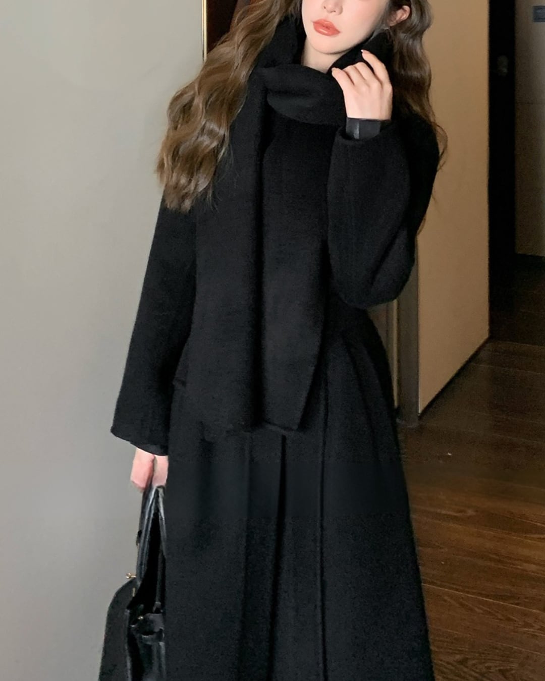 #ロングコート #ウールコート #大人ガーリー #スタイルアップ #ブラックコート #高見えコーデ #冬アウター #フォーマルアウター