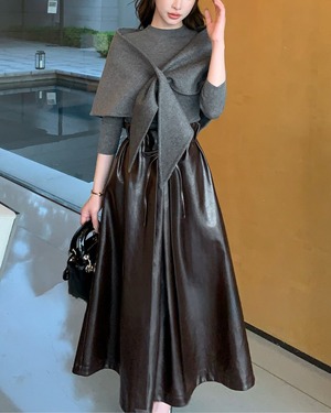 #フェイクレザー #リボン付きスカート #フレアシルエット #ウエストゴム #大人ガーリー #秋冬スカート