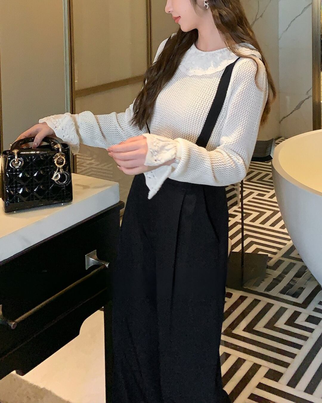#フリル襟 #レーストップス #メッシュニット #綿100 #大人ガーリー #レイヤードコーデ #ホワイトトップス