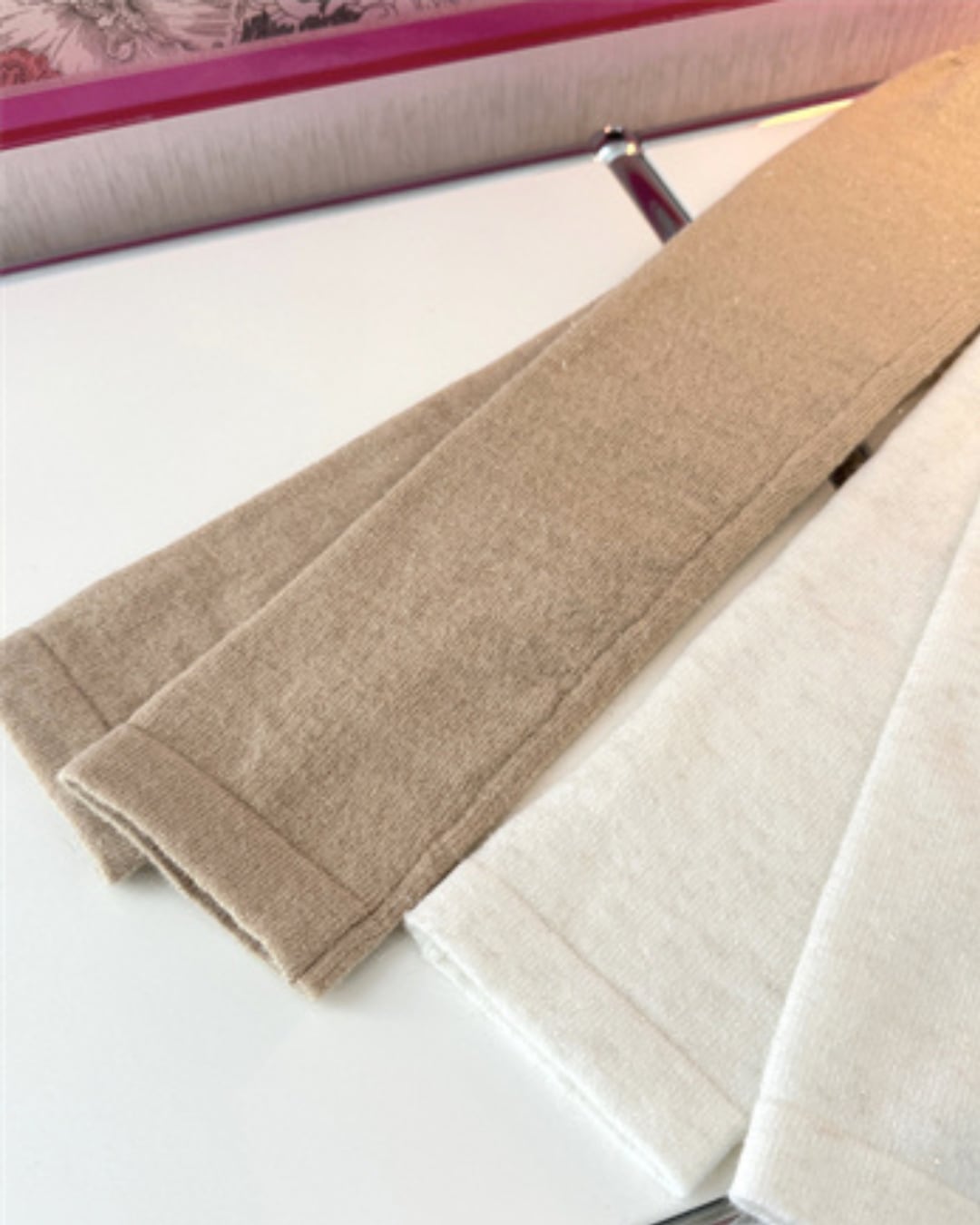 #ニットセットアップ #大人ガーリー #アームカバー付き #タイトワンピ #ホワイトコーデ #ベージュコーデ #肌見せ控えめ