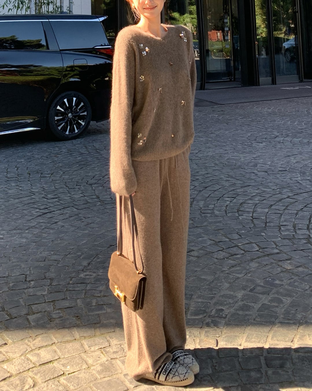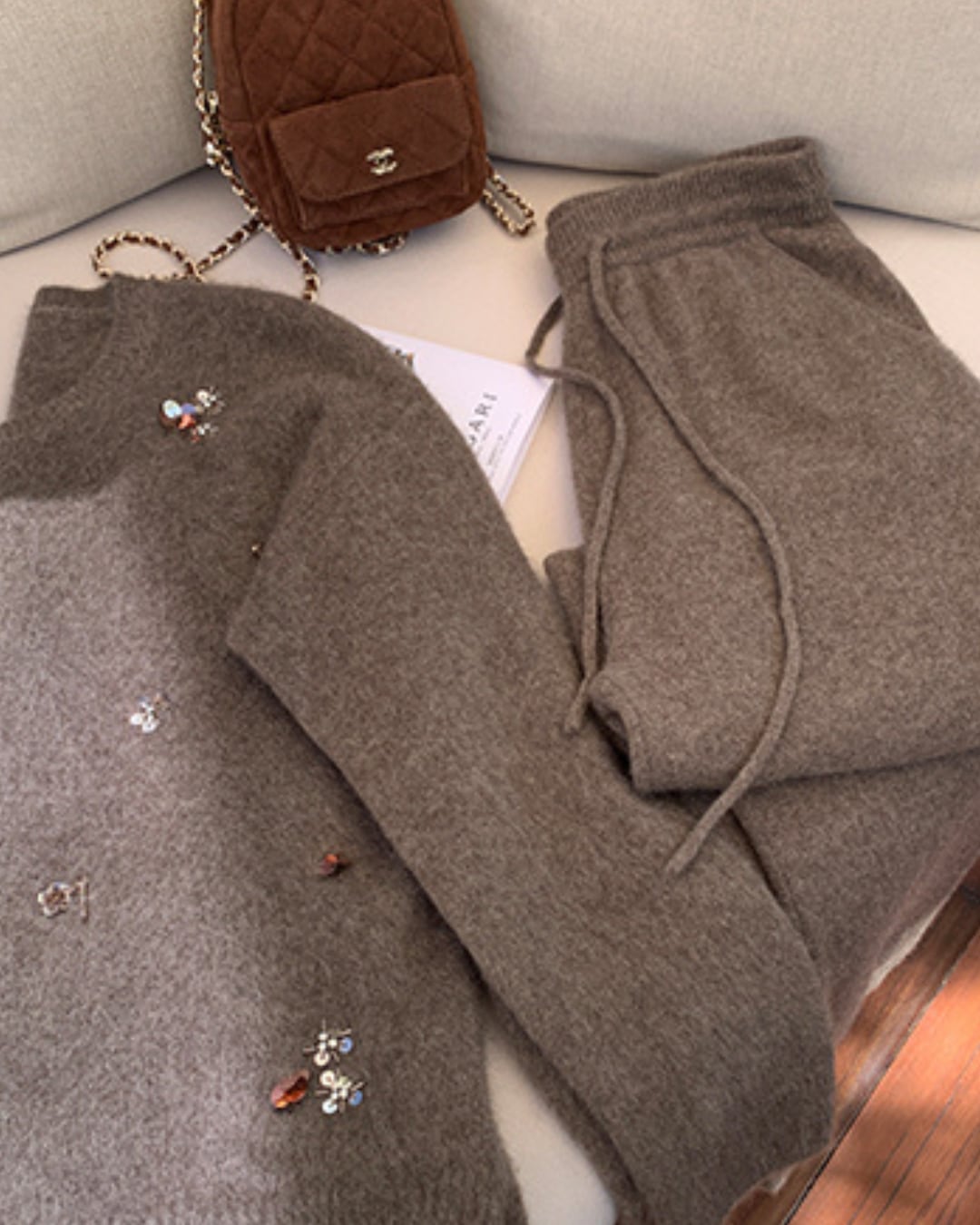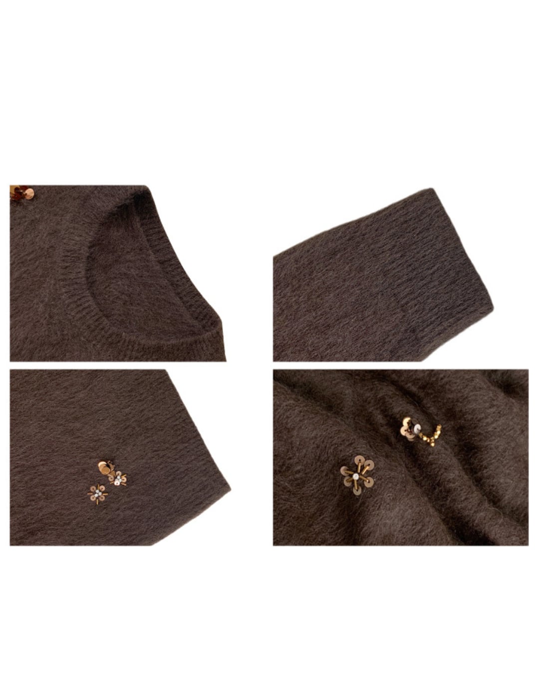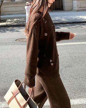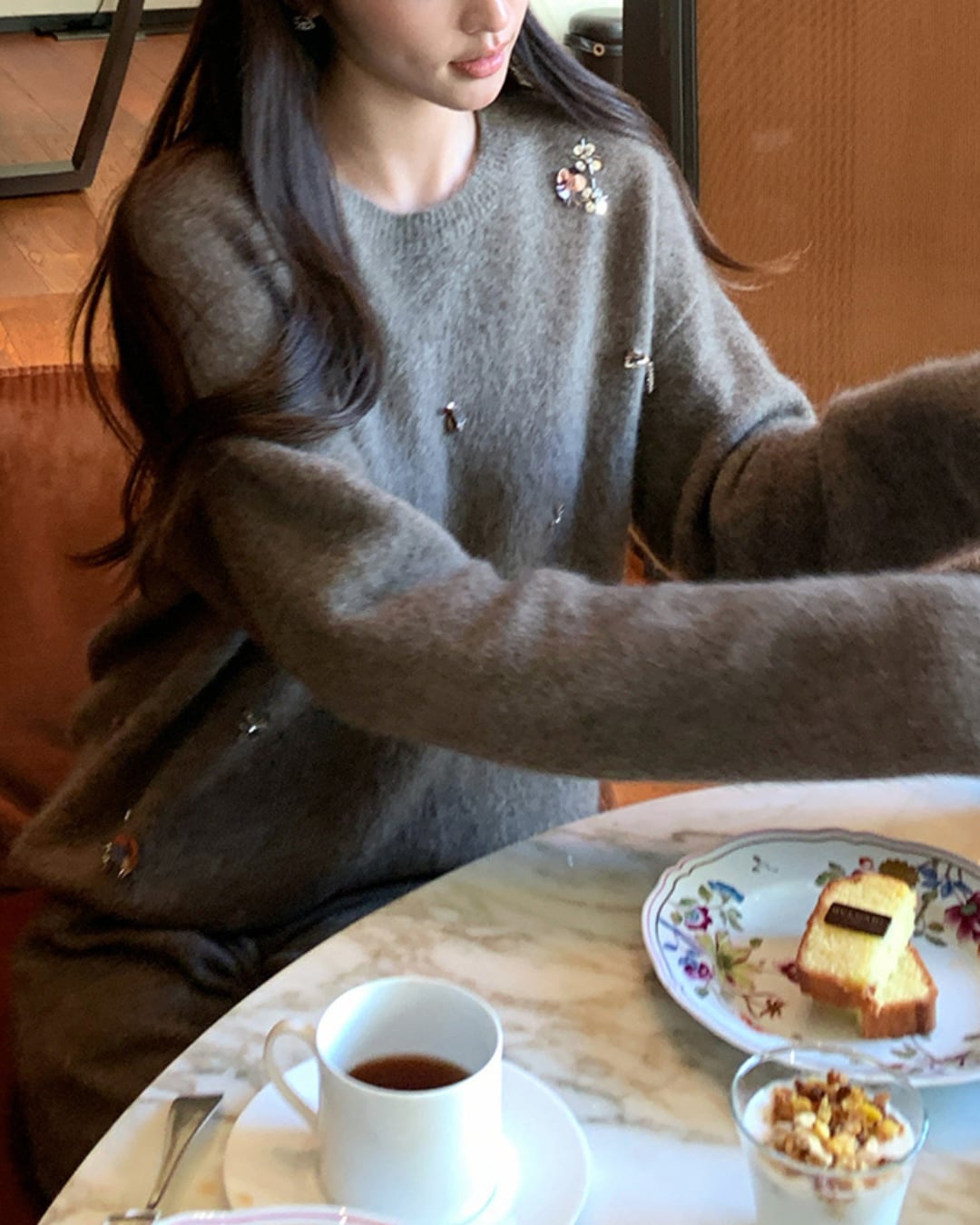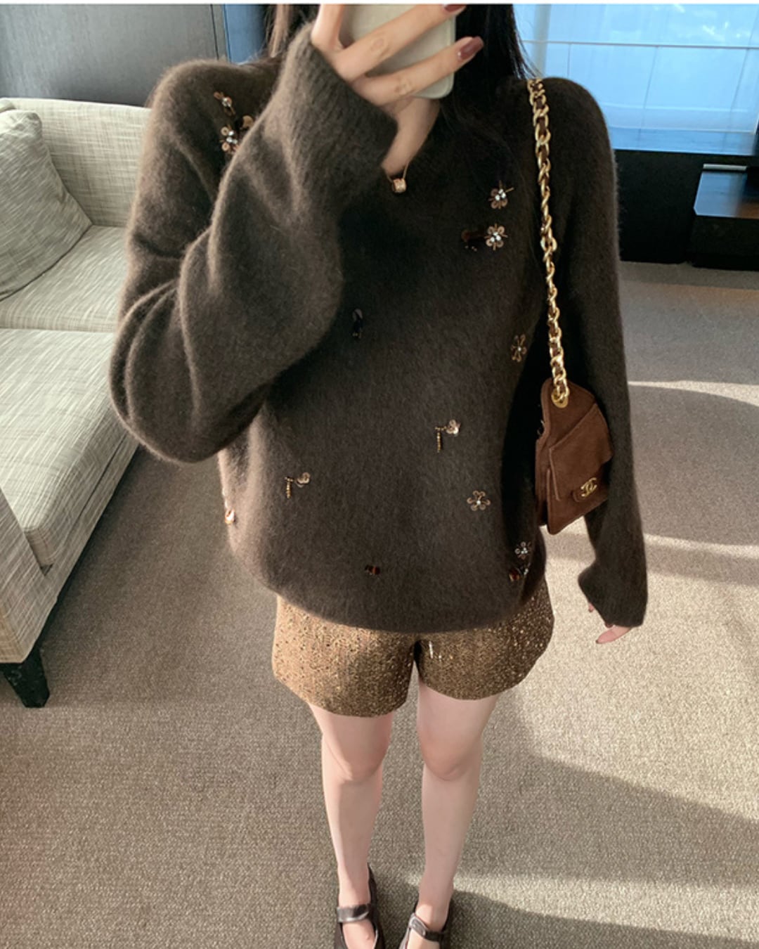 #ビジューニット #シャギーニット #ブラウンコーデ #大人ガーリー #秋冬トップス