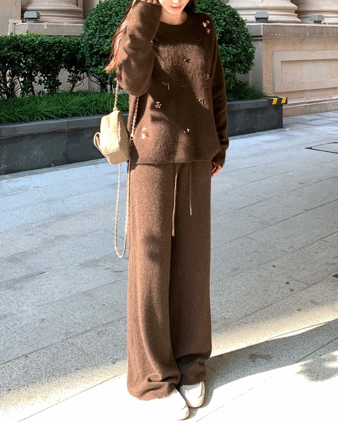 ほのかな光沢を放つビジュー刺繍がポイントの、ふんわりシャギー感が魅力のニットトップス。軽やかで柔らかい風合いの素材が肌に優しくフィットし、着心地も暖かさも抜群。程よくゆったりしたシルエットで、カジュアルからフェミニンまで幅広く着まわせる1枚。2色展開で、秋冬コーデの主役アイテムとしておすすめです。