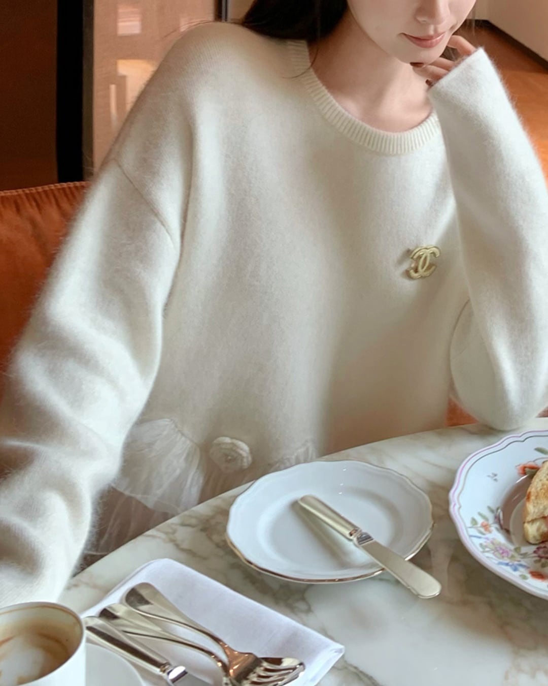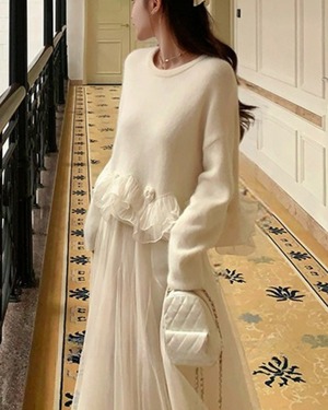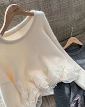 #フリルニット #チュール付きトップス #大人ガーリー #フェザーニット #フラワーディテール